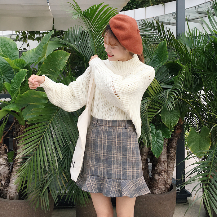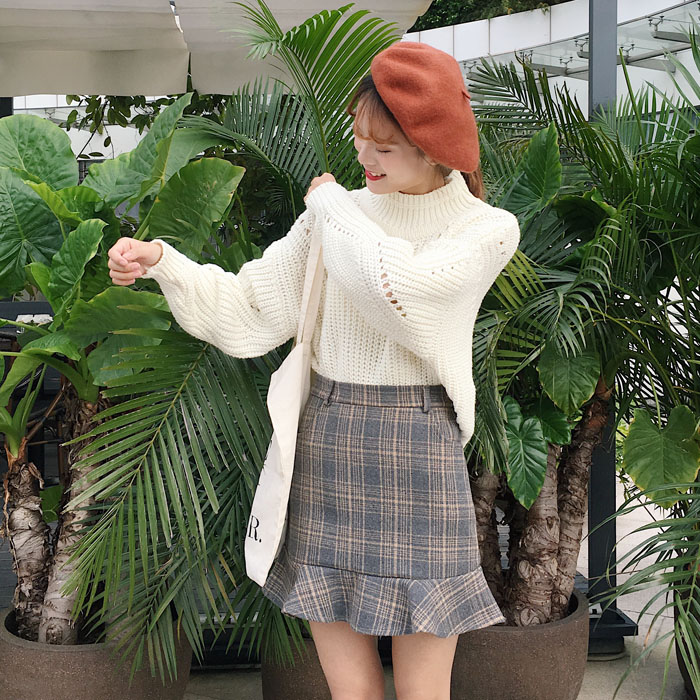 / 秋冬女裝韓版高腰氣質百搭格子魚尾裙荷葉邊短裙半身裙顯瘦A字裙
