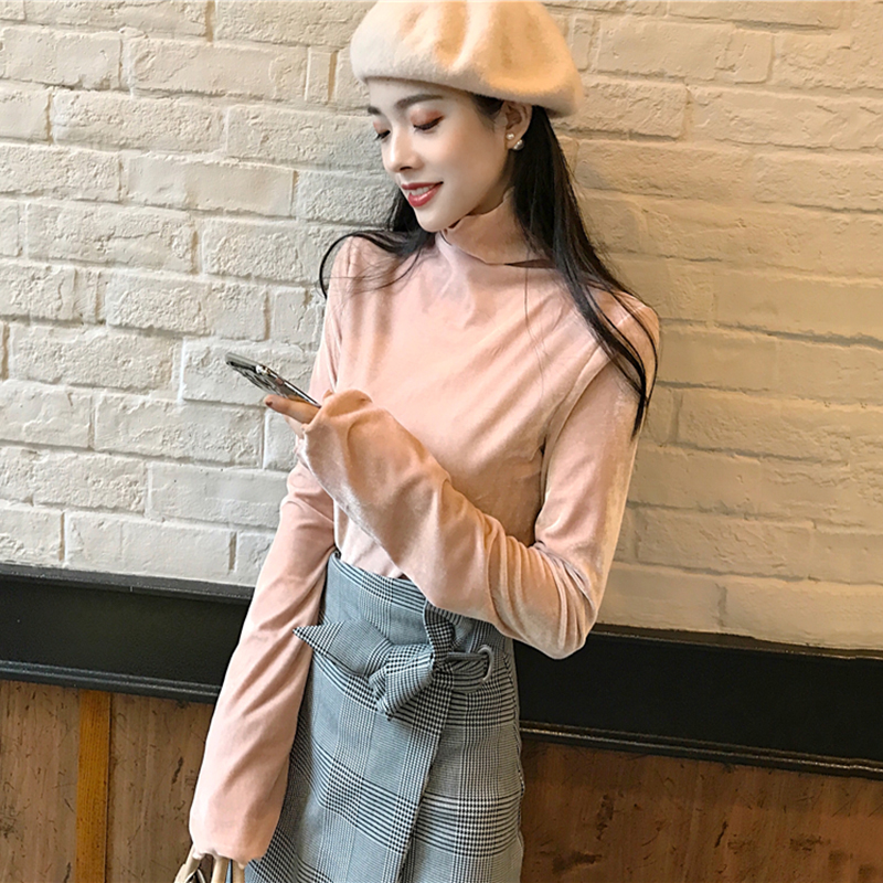 / 冷系女裝高領絲絨長袖衣服秋裝女新款修身黑色打底衫氣質T恤上衣
