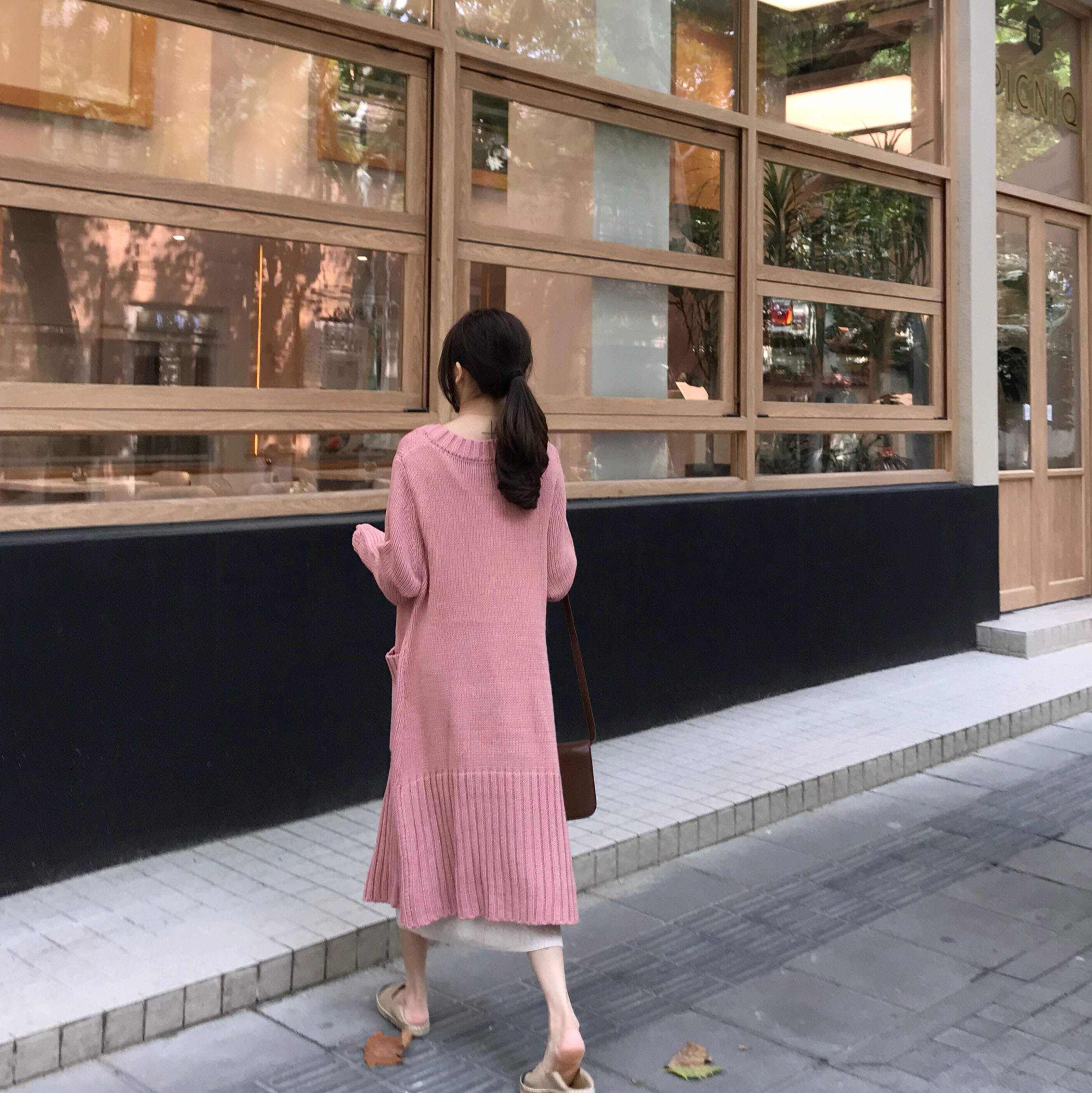 燕麥色針織打底毛衣女2018新款背心裙+長袖保暖長款針織開衫外套