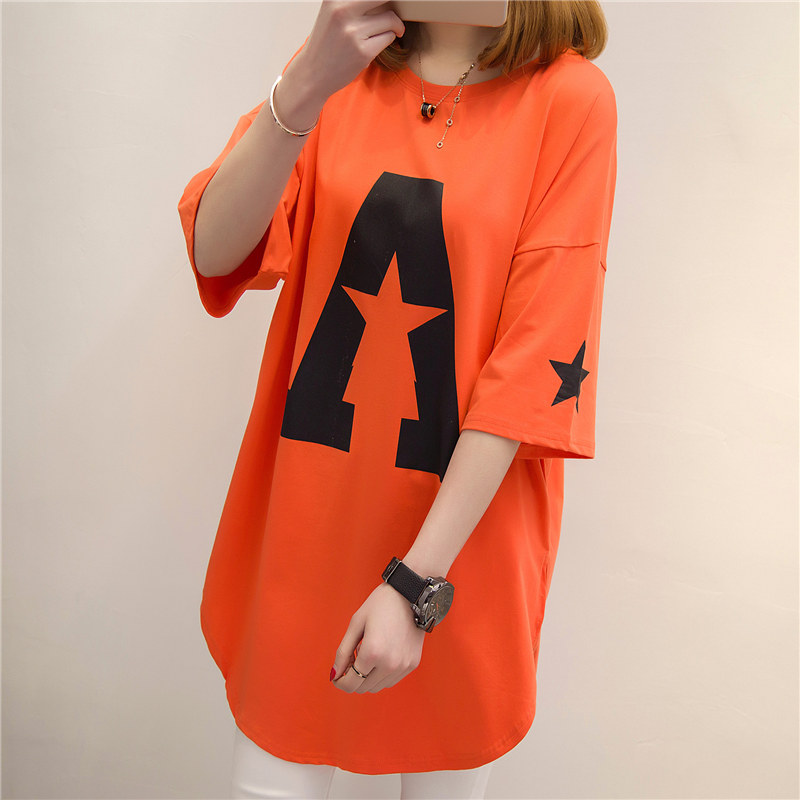 / 衣服女春裝新款潮中長款短袖t恤女寬松體恤夏裝韓版打底衫