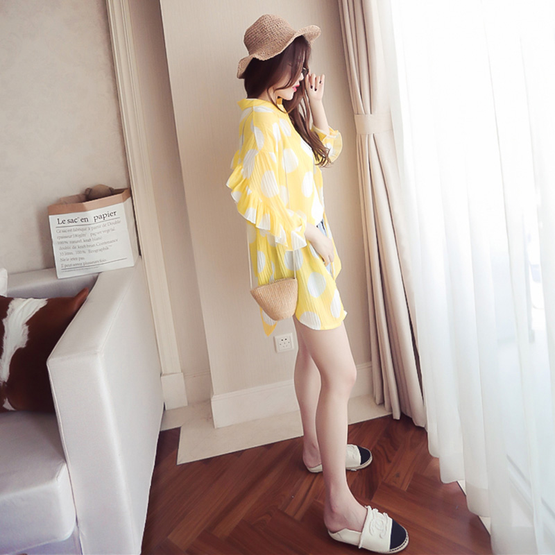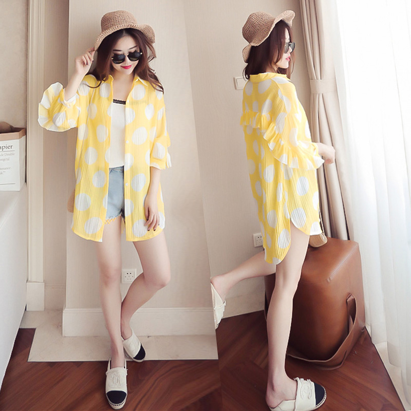 / 防曬衣女夏季新款韓版學生寬松七分袖荷葉邊中長款襯衫薄外套