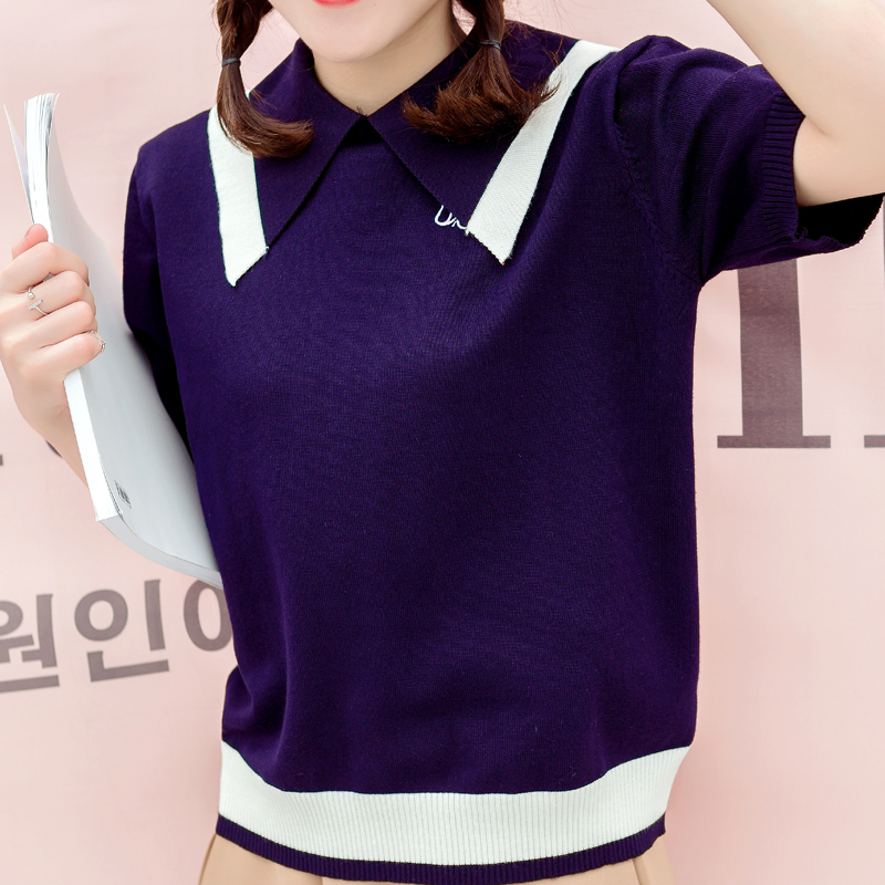 學院風毛針織衫女夏裝新款韓版女裝休閑打底衫短袖撞色上衣潮