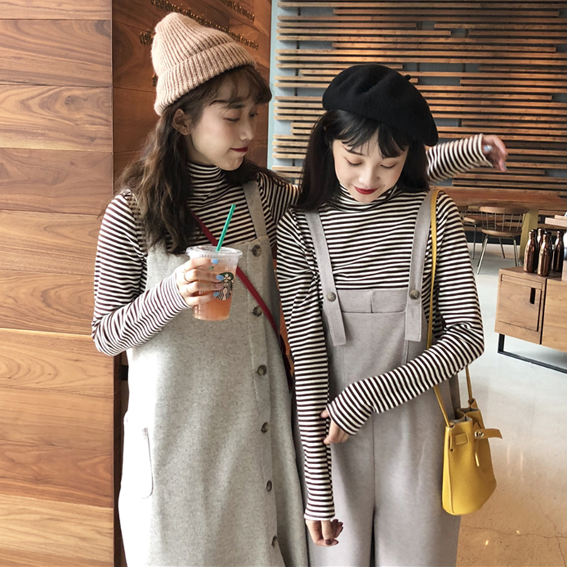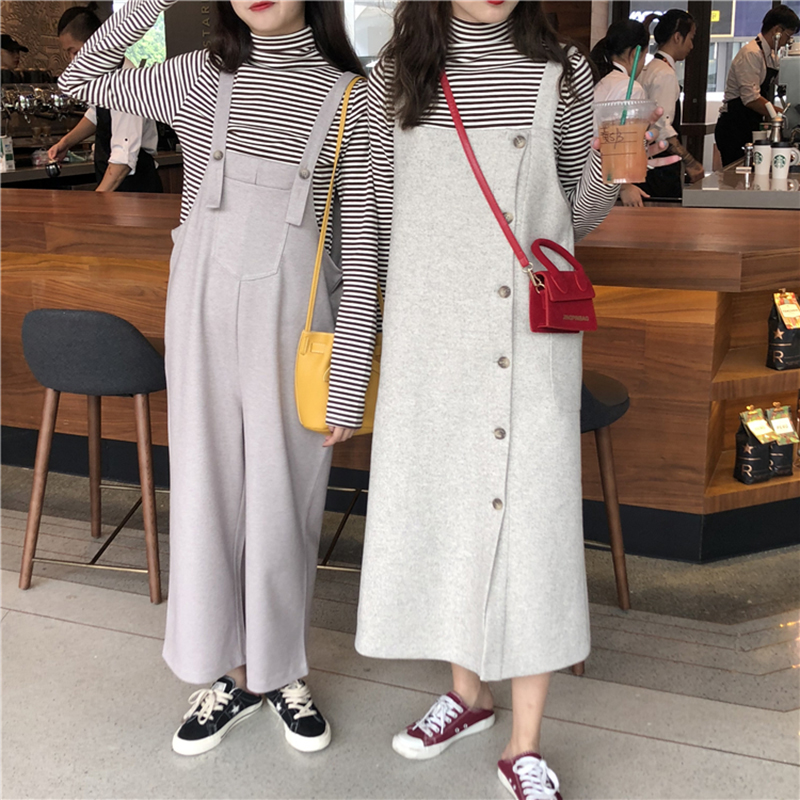 / 簡約純色閨蜜裝寬松背帶連體褲女秋新款韓版學生休閑吊帶連衣裙子