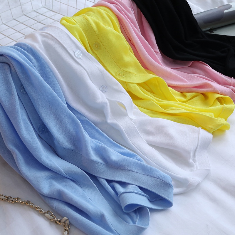 / 防曬開衫女夏薄短款長袖純色針織外套女夏季薄款外搭空調衫女開衫