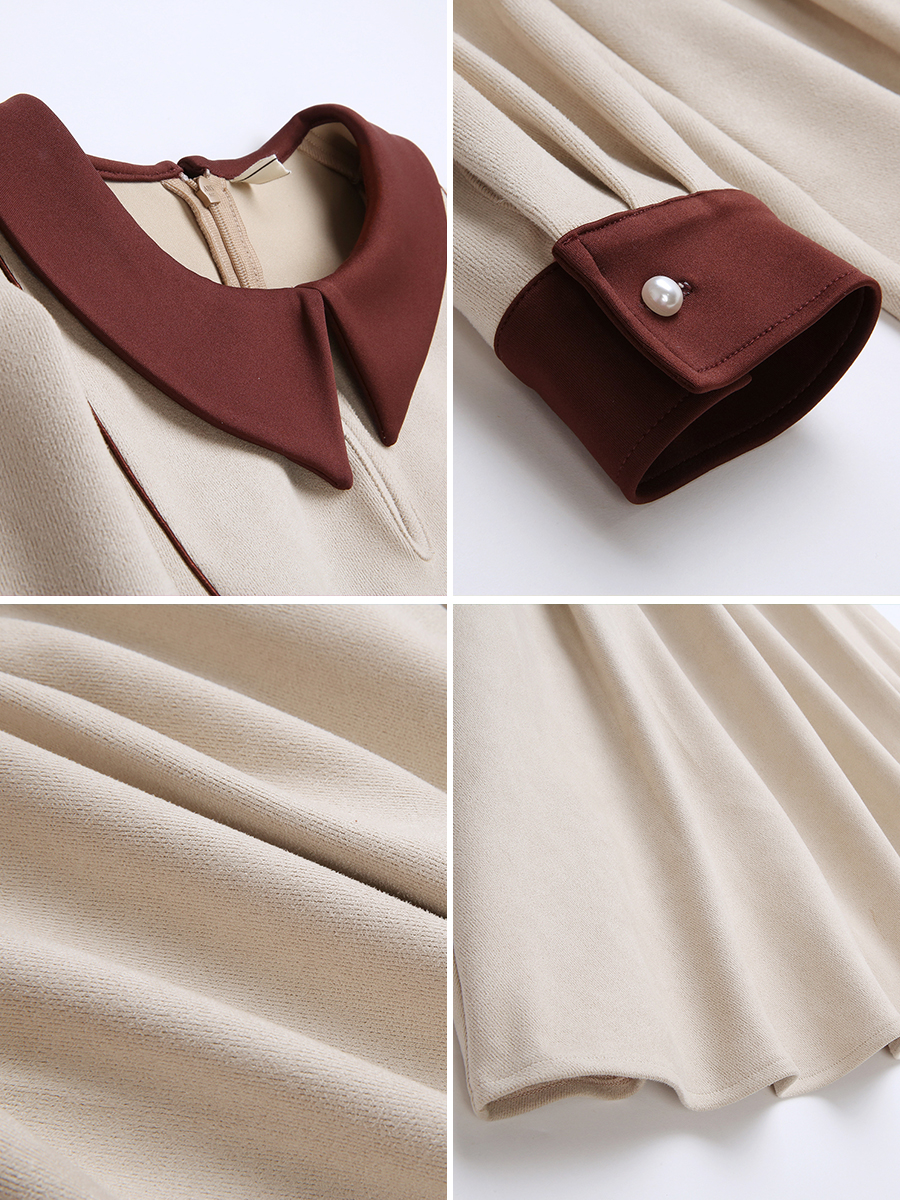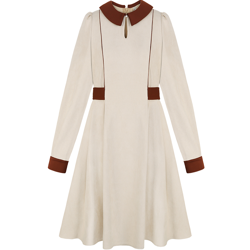 MG小象復古氣質連衣裙女秋冬2018新款娃娃領收腰中長款chic裙子潮