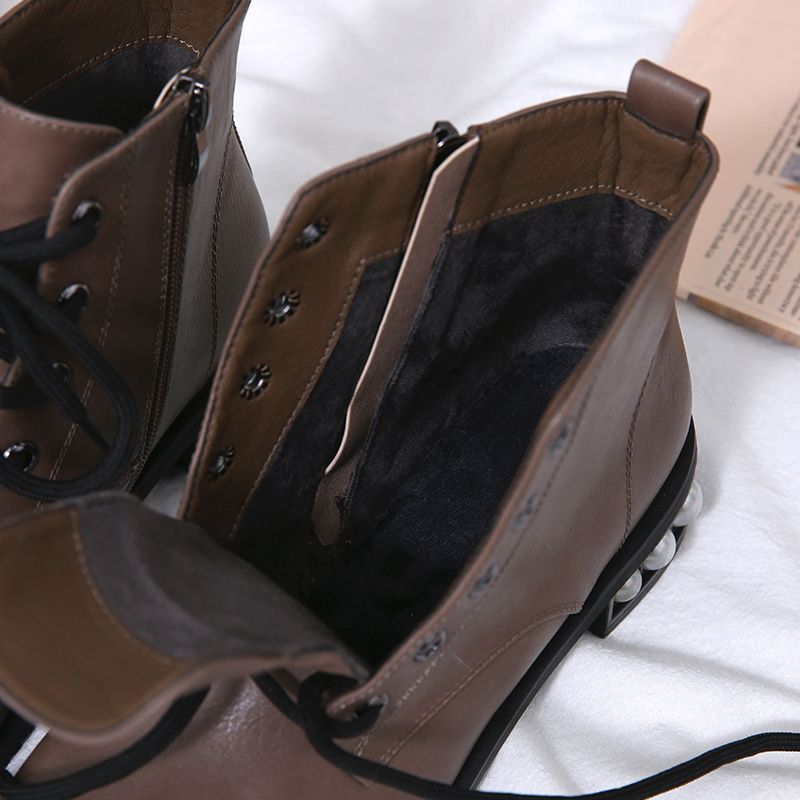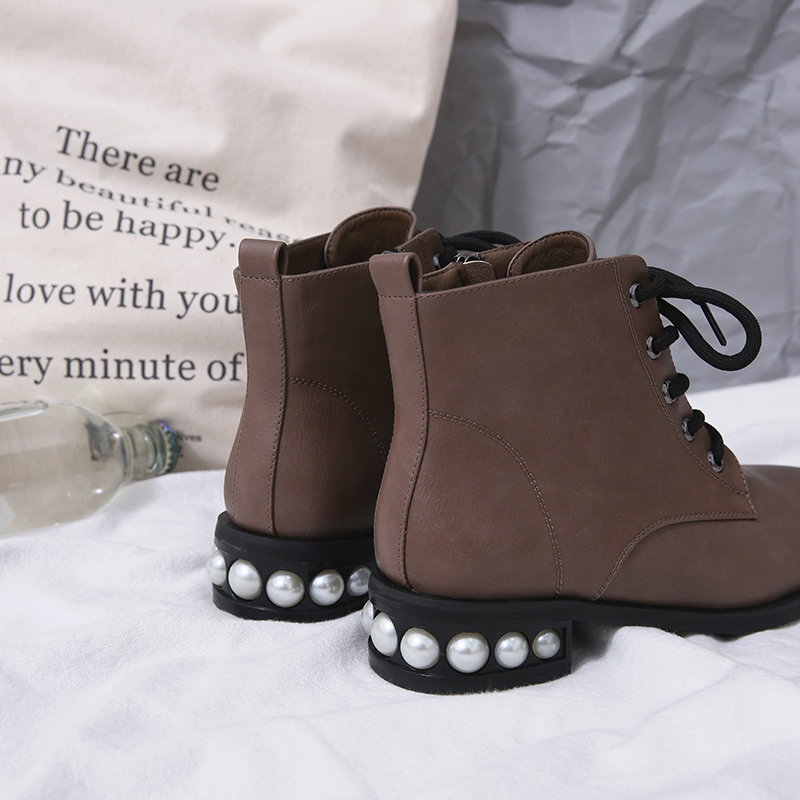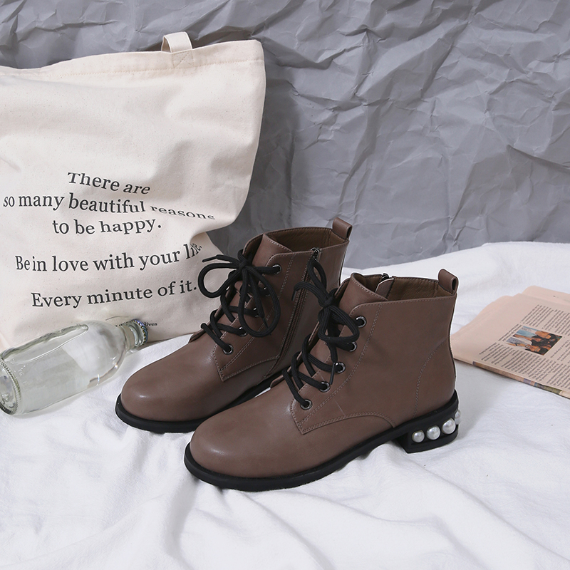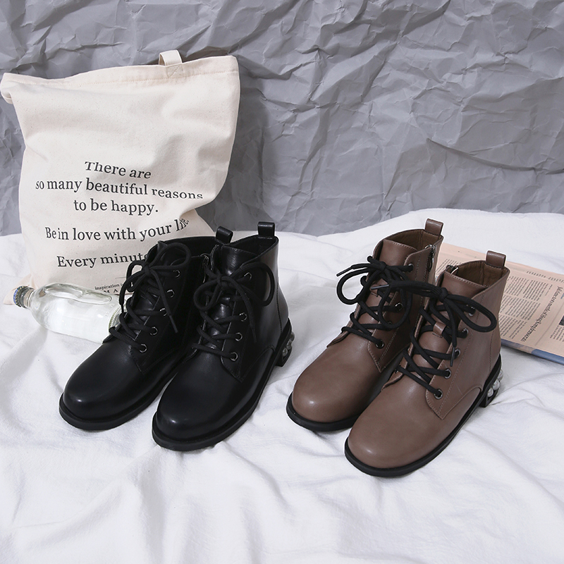 MG小象時尚馬丁靴女秋冬2018新款個性圓頭復古短靴學生方跟休閑鞋