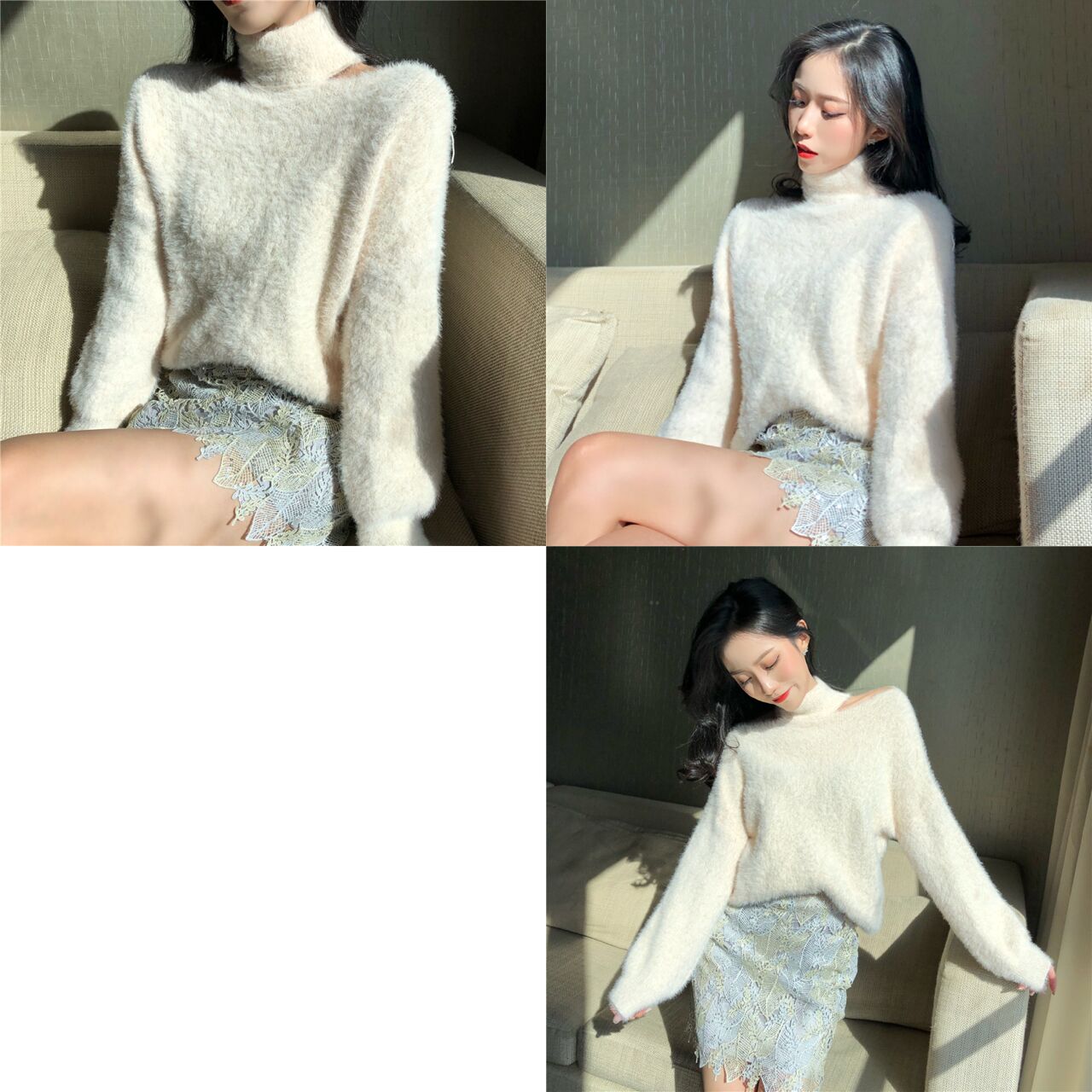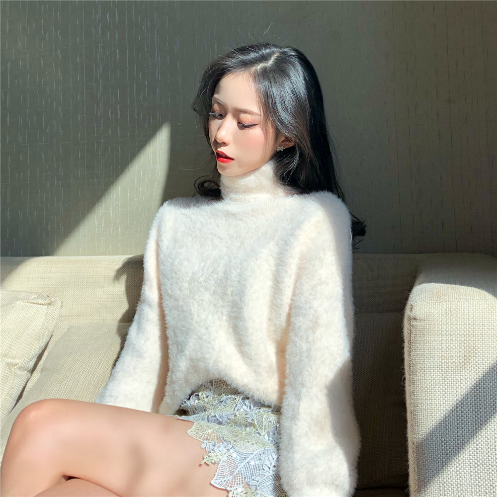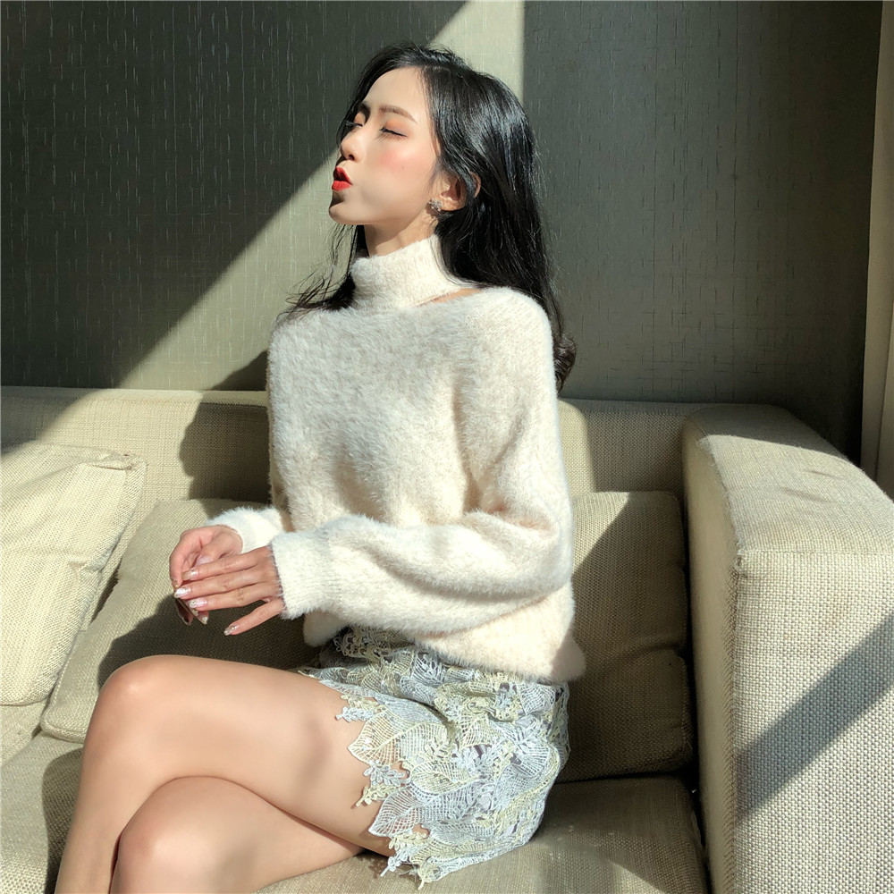 / 韓版馬海毛套頭掛脖漏肩毛衣女秋冬2018新款寬松針織打底衫上衣潮