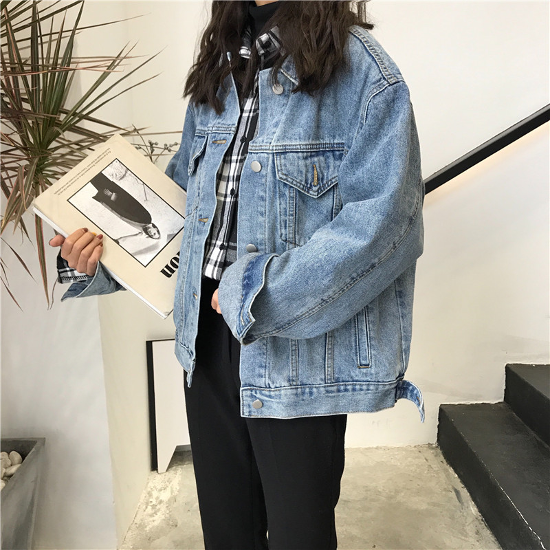 秋裝女裝韓版寬松原宿風外套復古做舊學生短款長袖牛仔夾克上衣潮