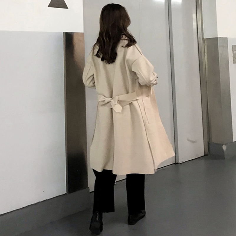 / 2018流行毛呢外套女秋冬裝新款赫本大衣寬松過膝開衫純色休閑上衣