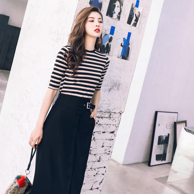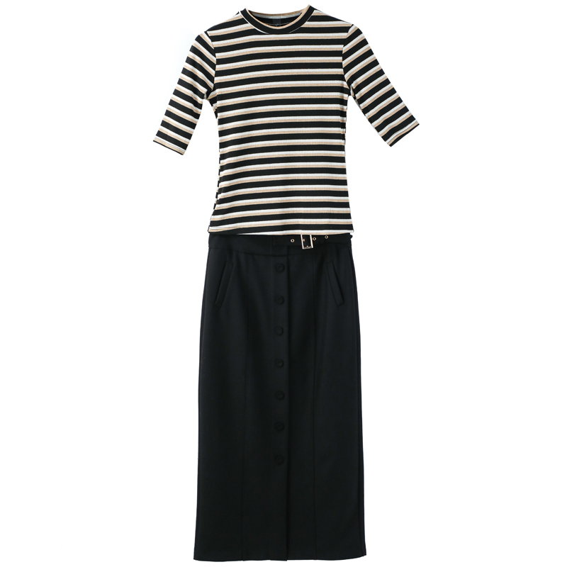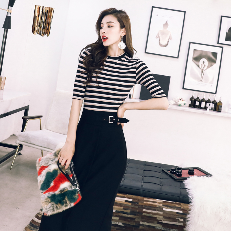 / 名媛氣質秋裝女2018新款時尚套裝針織上衣高腰半身裙修身兩件套潮