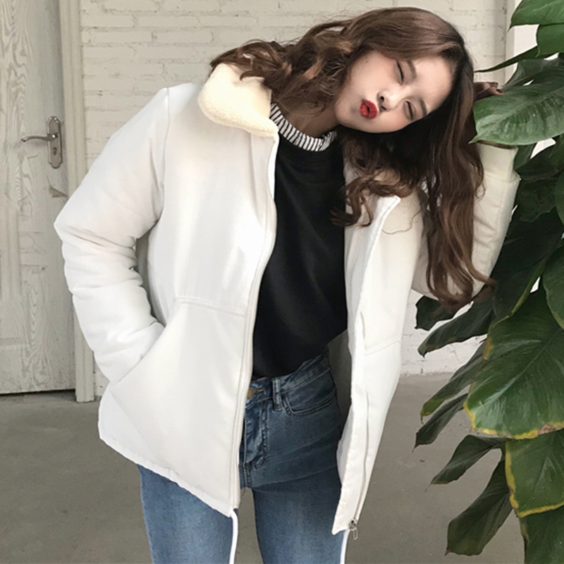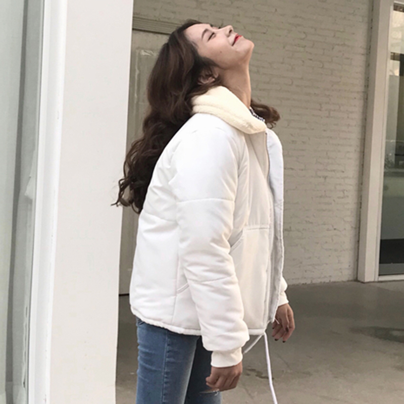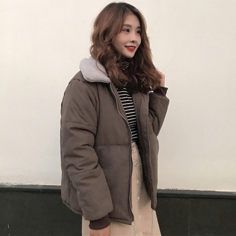 / 羊羔毛拼接棉襖2018冬季女裝新款學生加厚面包服寬松長袖休閑外套