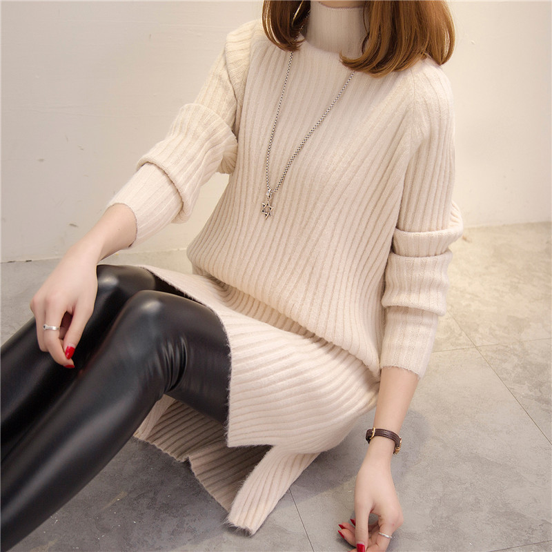 / 冬裝新款潮女裝純色高領針織打底衫加厚毛衣女秋冬中長款線衣