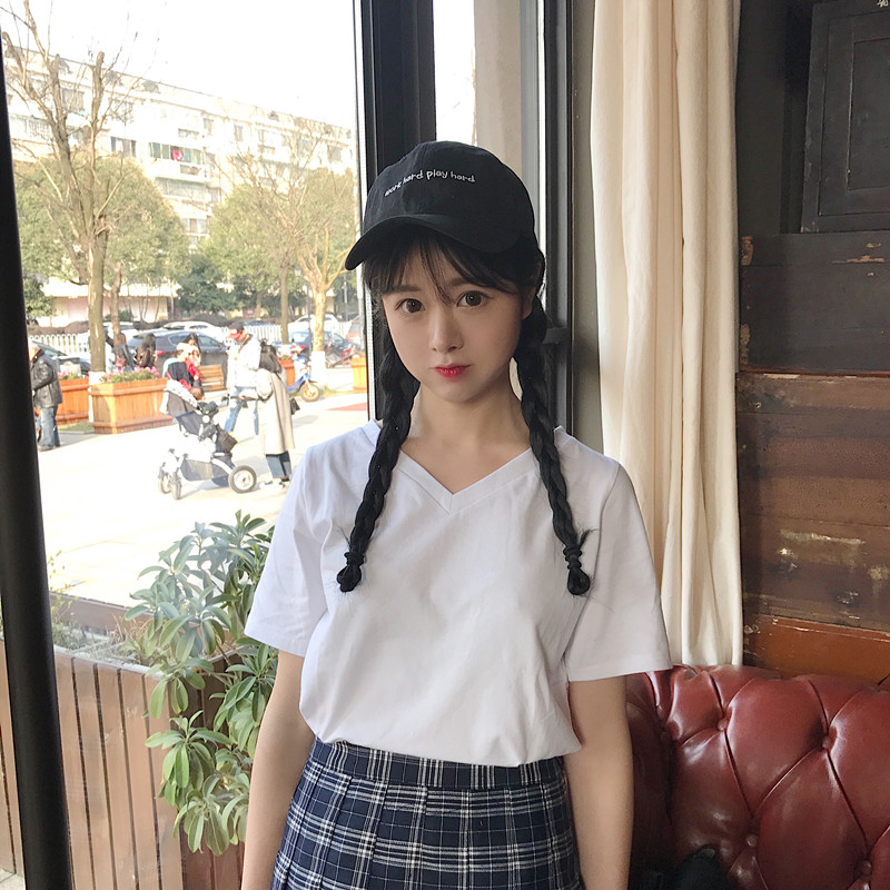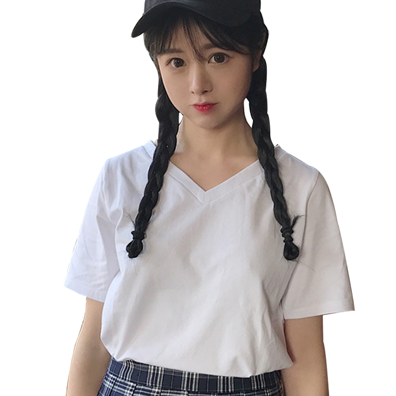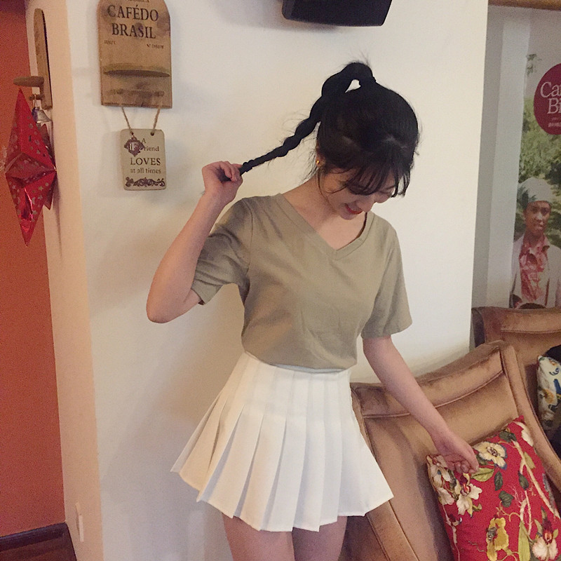 / 春夏女裝新款韓版百搭V領純色基礎款T恤簡約短袖打底衫上衣學生潮