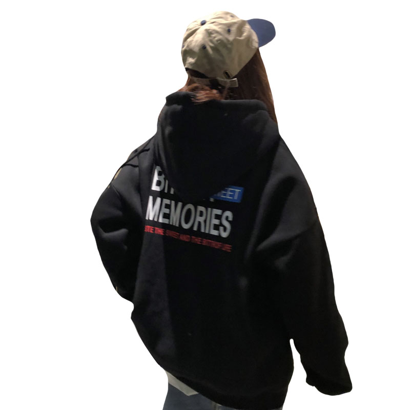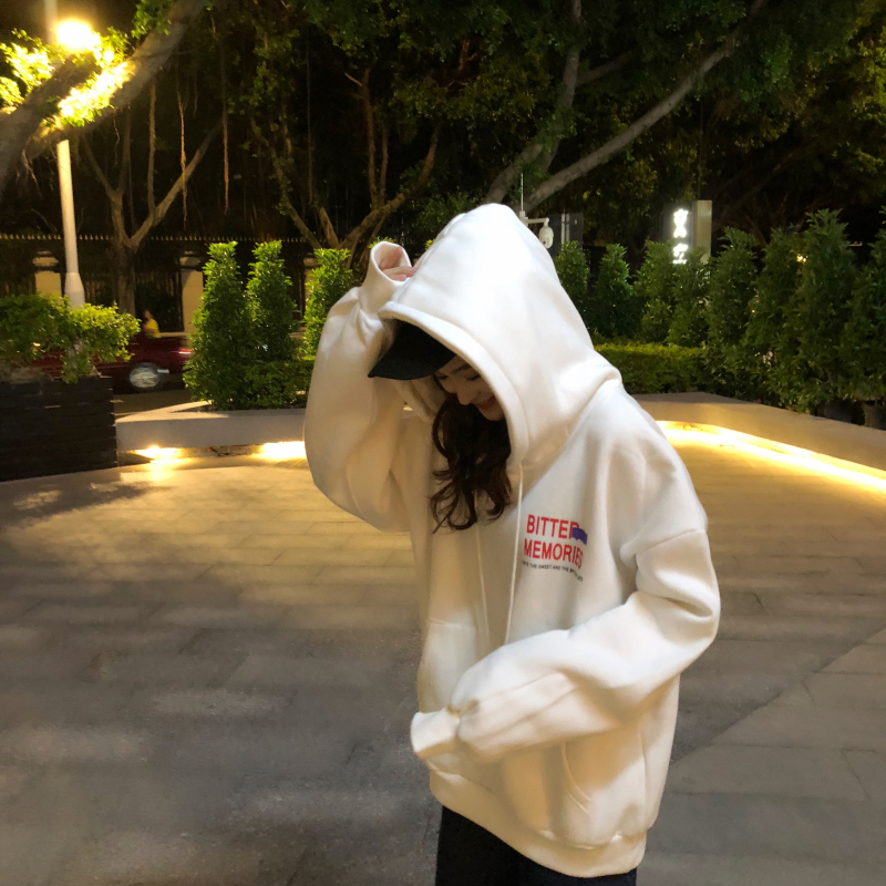 2018新款秋冬韓版原宿風字母加絨加厚寬松連帽套頭衛衣上衣外套女