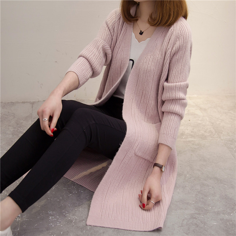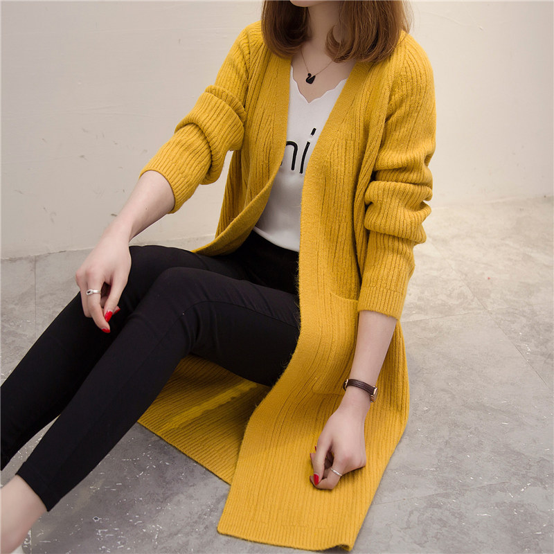/ 新款女裝潮韓版寬松中長款毛衣外套女百搭長袖學生針織衫開衫