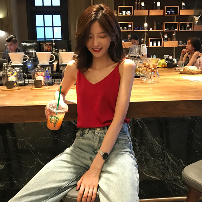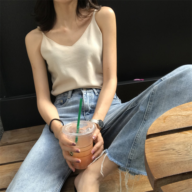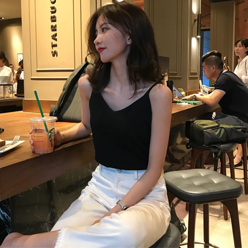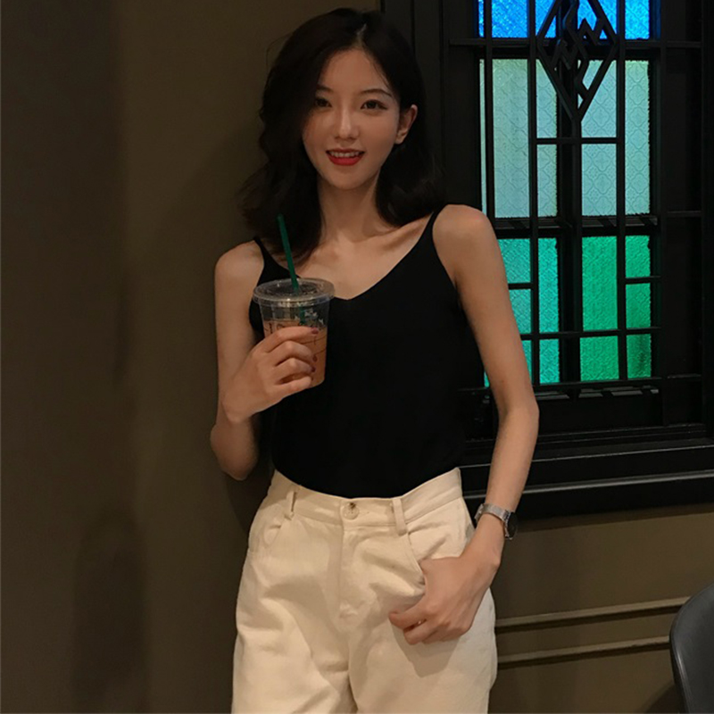 / 夏季女裝新款韓版修身顯瘦V領吊帶小背心簡約風純色打底無袖上衣
