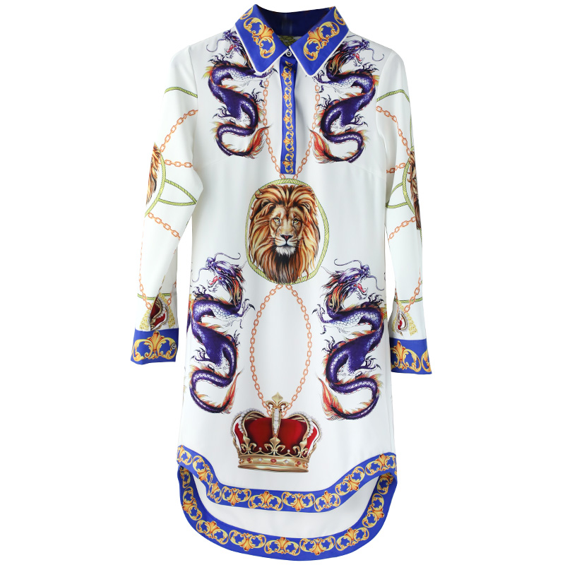 / 秋裝女2018新款名媛氣質中長款長袖襯衫修身收腰顯瘦印花連衣裙潮