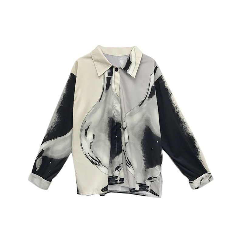 所以我就出了這款,在原本中性化的襯衫版型上加入了印花設計,看起來中性帥氣,整體的版型是比較寬松的。