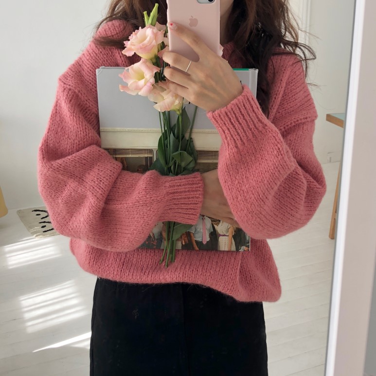 秋冬2018新款韓版慵懶風加厚馬海毛寬松網紅套頭毛衣針織衫外套女