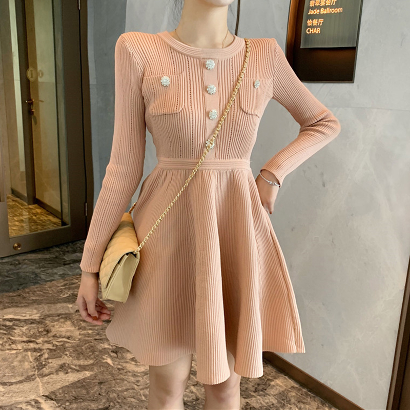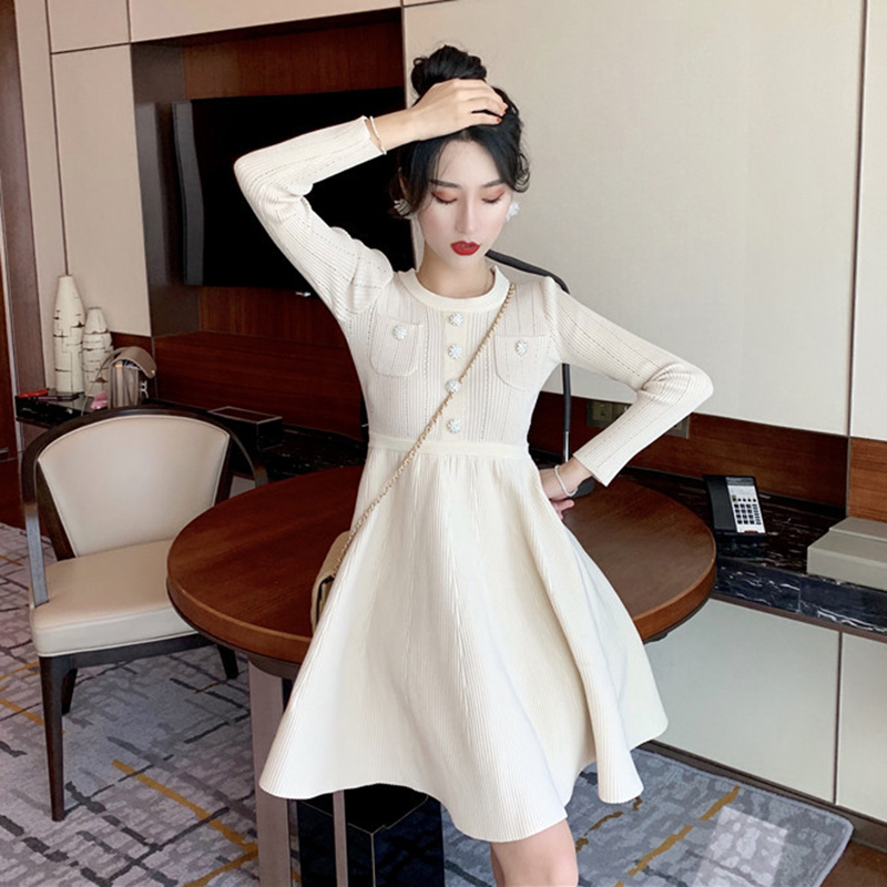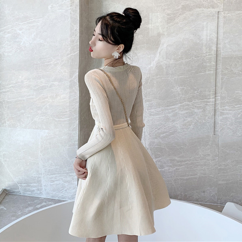 / 法式少女裙秋冬2018新款港味修身小個子初戀桔梗裙打底針織連衣裙
