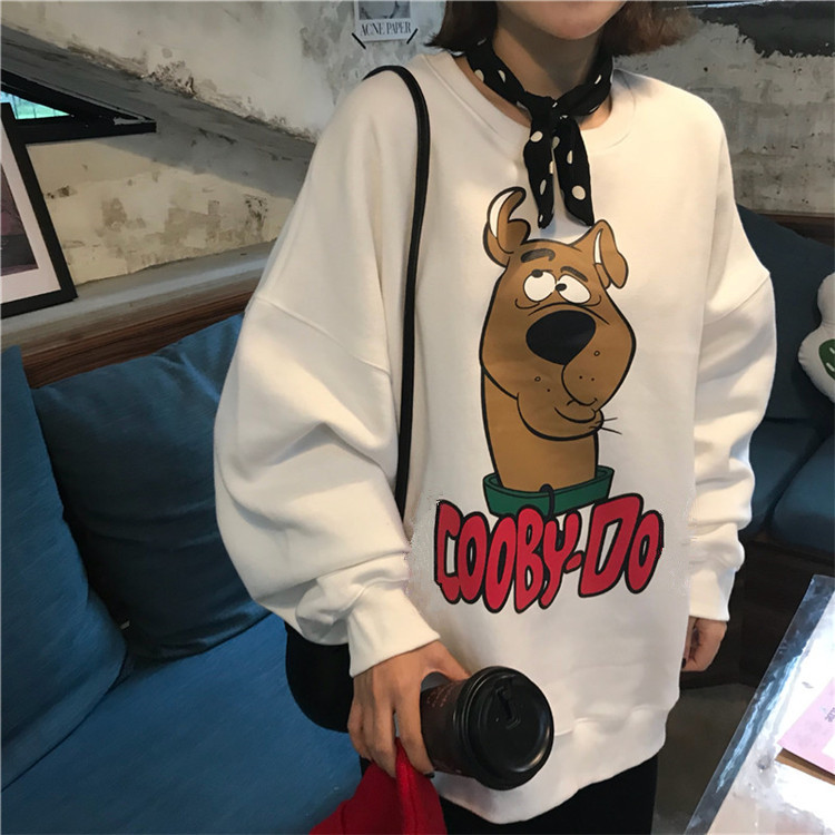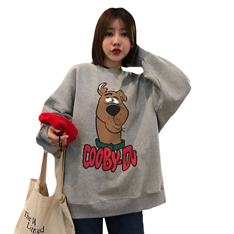 / 秋冬女裝韓版中長款原宿風小狗字母卡通寬松加絨加厚衛衣上衣外套