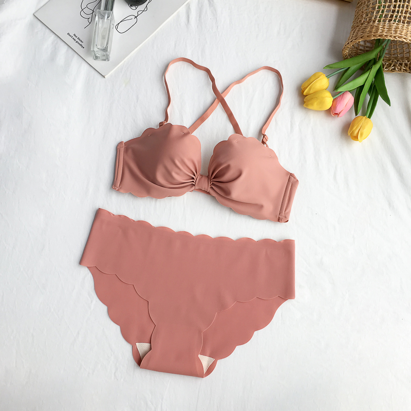 / 韓系秋裝女2018新款蝴蝶結少女聚攏內衣+無痕波浪紋內褲文胸套裝