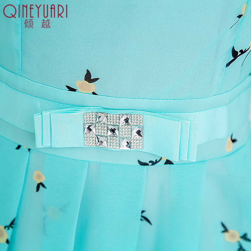 / 碎花短袖雪紡連衣裙2017夏季淑女修身收腰中長款時尚印花連衣裙子