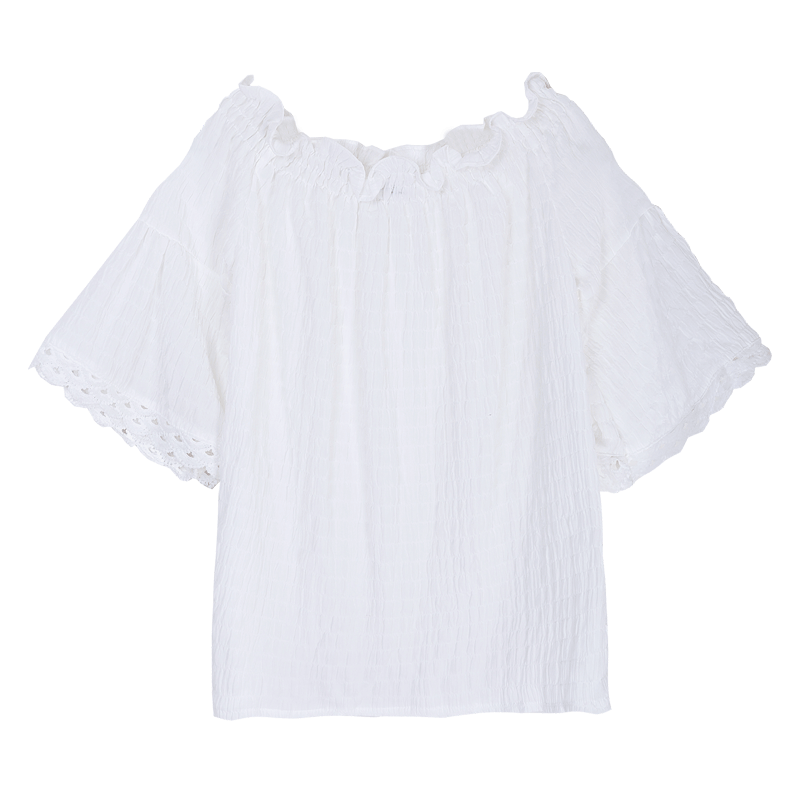 小喇叭拼蕾絲袖口的設計,輕松遮住拜拜肉的同時更顯仙氣