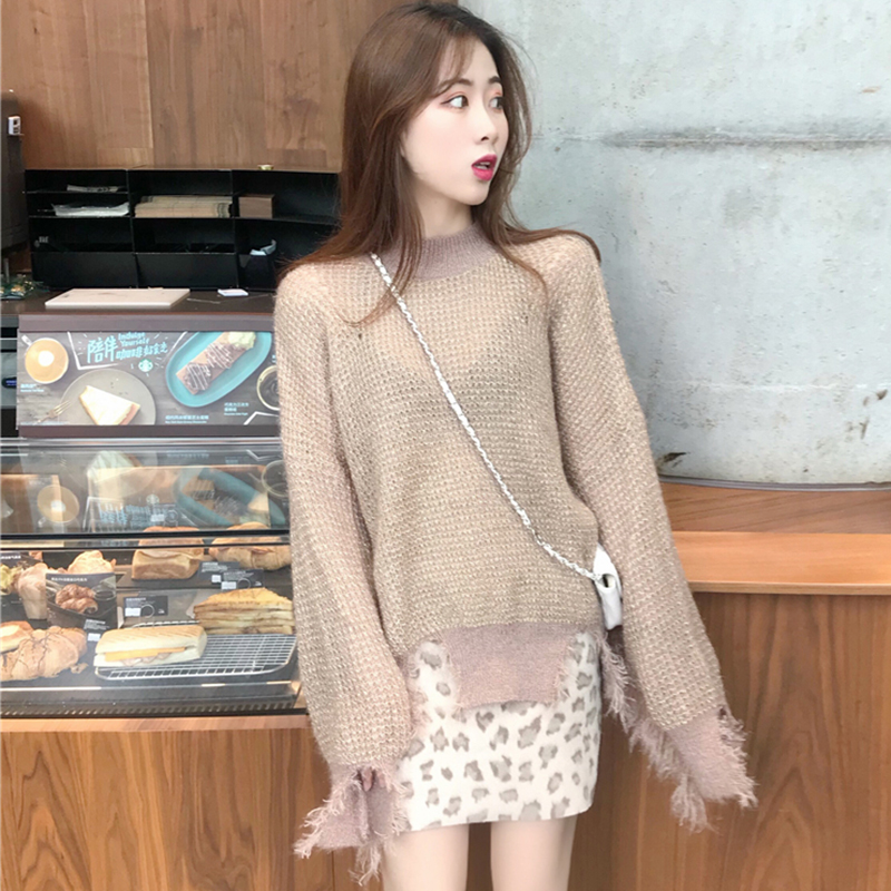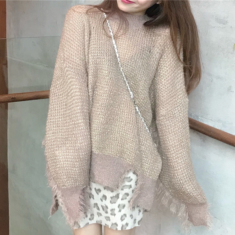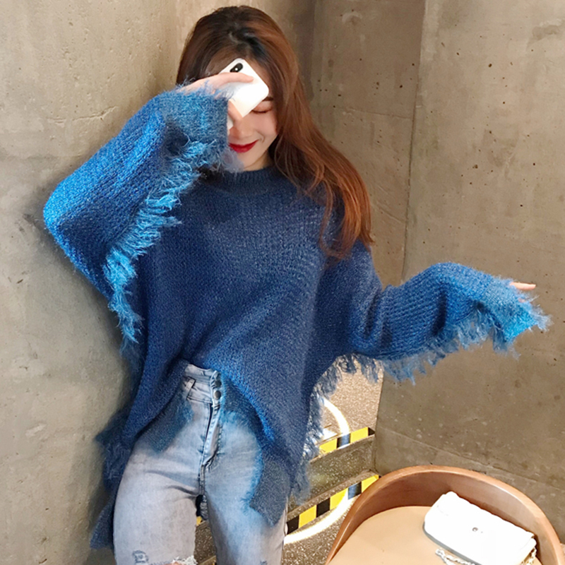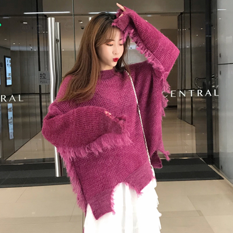 個性流蘇寬松長袖毛衣女秋冬裝2018新款慵懶時尚針織外套學生上衣