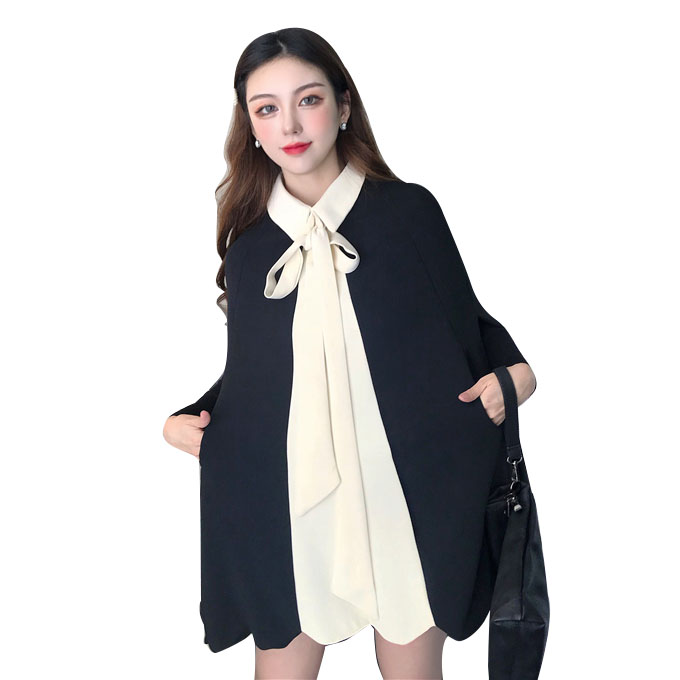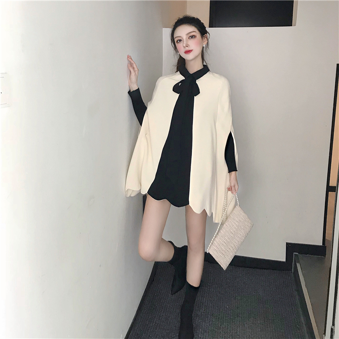 / 女神套裝秋兩件套蝴蝶結無袖披肩斗篷外套女+黑色長袖針織打底衫