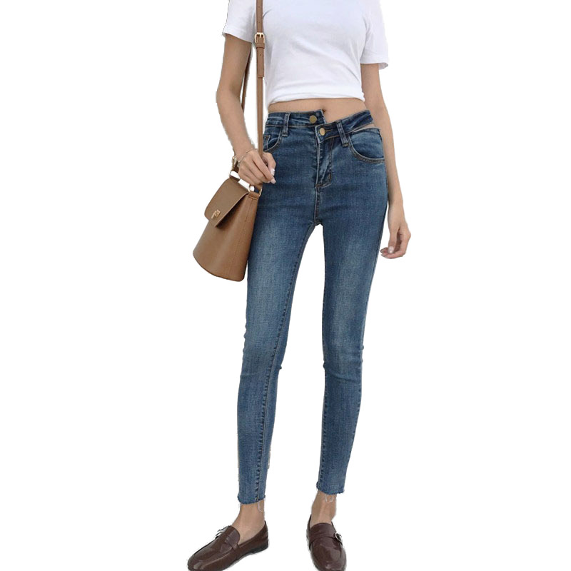 秋季新款復古韓國不規則高腰顯瘦百搭小腳褲水洗做舊九分牛仔褲潮