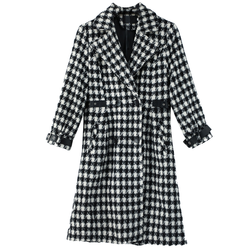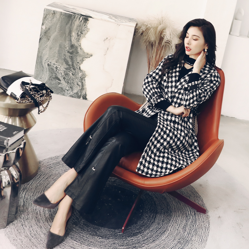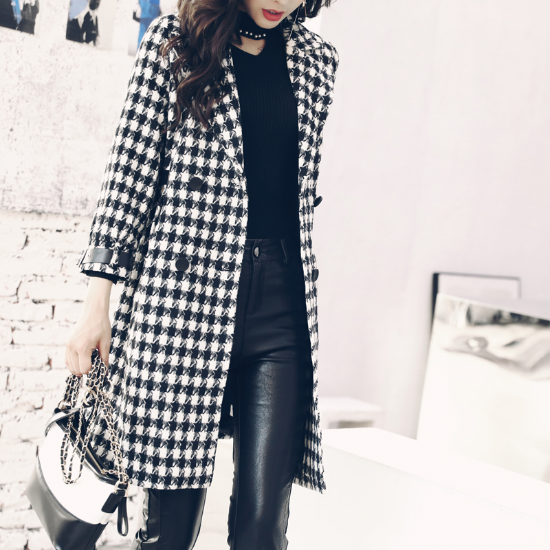 赫本風毛呢外套女中長款韓版2018新款秋冬季流行格子過膝呢子大衣