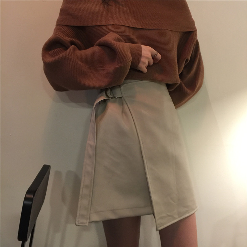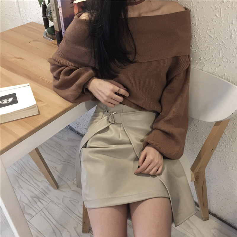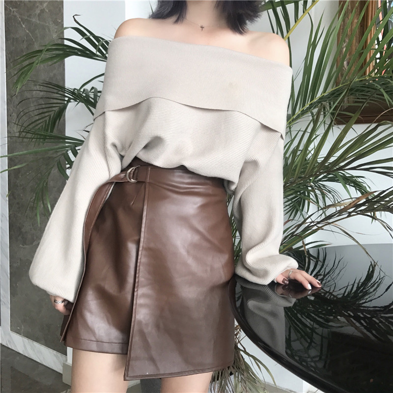 2018秋裝新款韓版時尚套裝PU皮短裙百搭半身裙顯瘦長袖毛衣針織衫