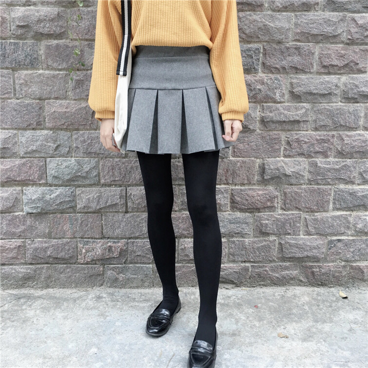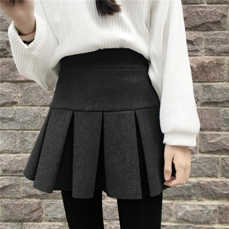 / 韓國學院風秋冬款百搭加厚毛呢半身裙百褶裙褲松緊高腰短裙女
