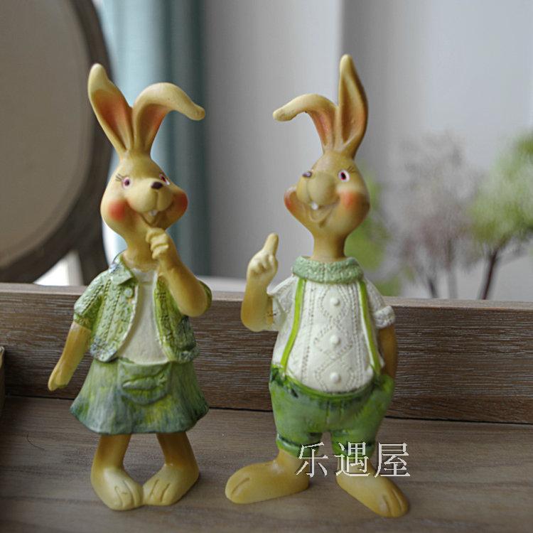 特美式鄉村創意家居擺件擱板裝飾兒童房Q兔樹脂工藝品森林童話