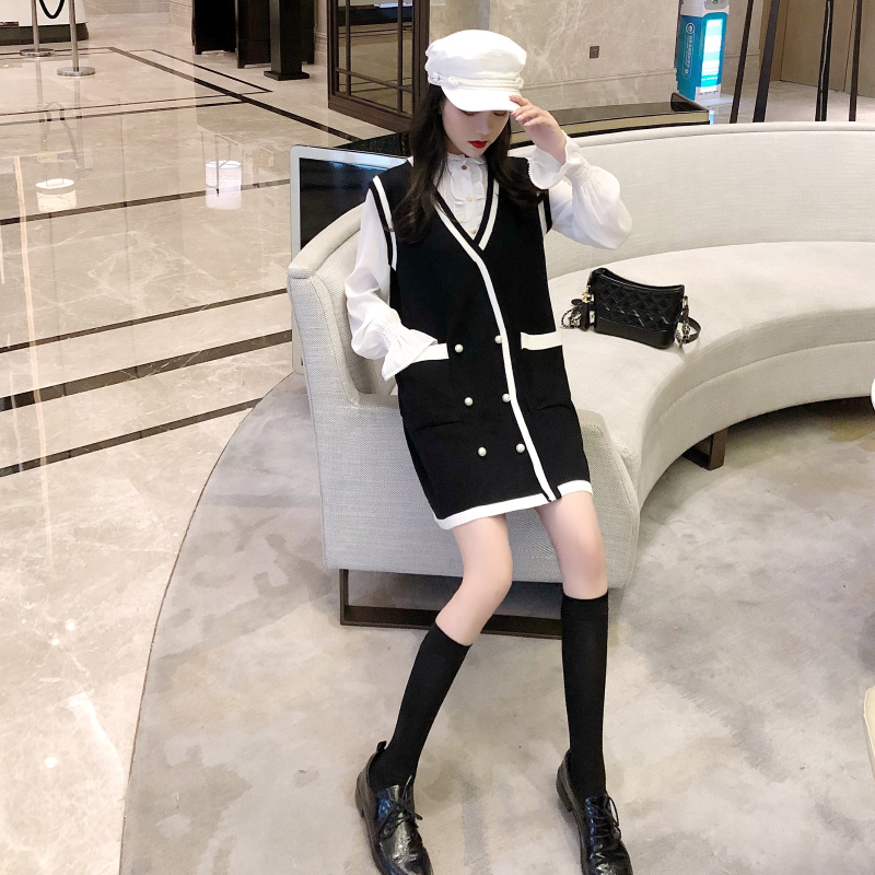 秋季套裝女名媛小香風時尚雪紡襯衫新款雙口袋毛衣裙韓版兩件套潮