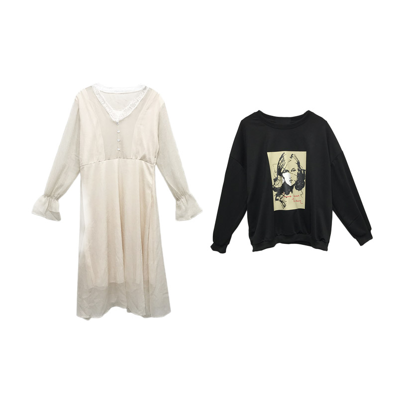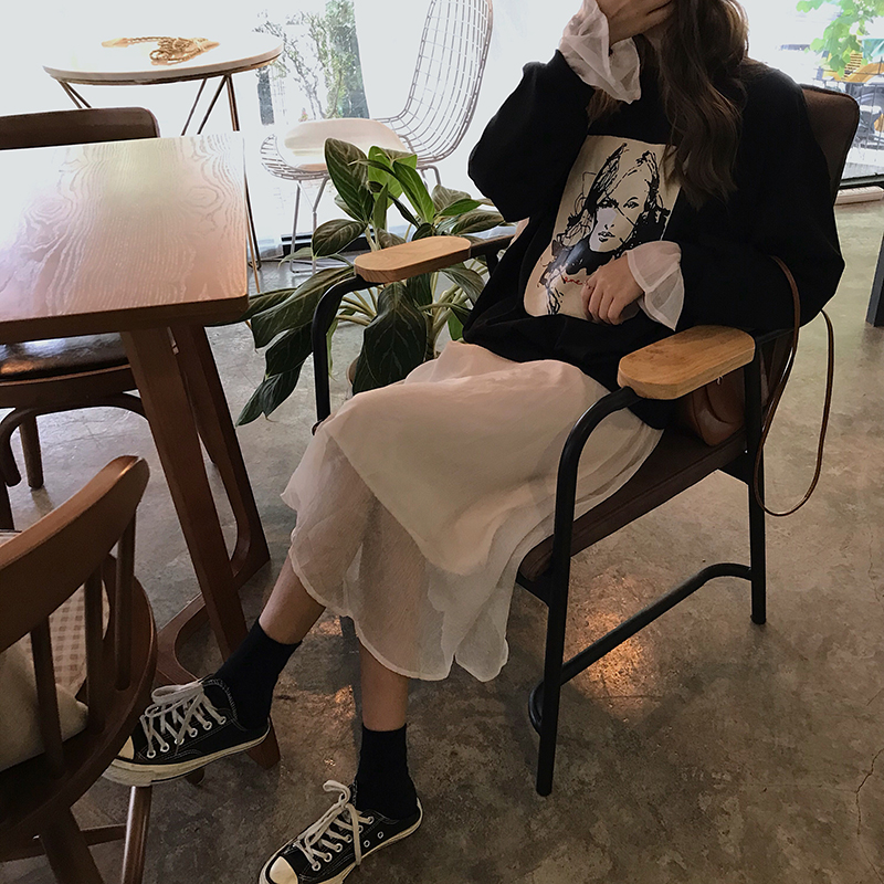 衛衣2018新款女長袖韓版寬松顯瘦oversize印花半高領慵懶長款裙子