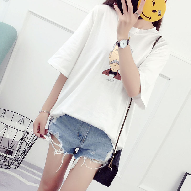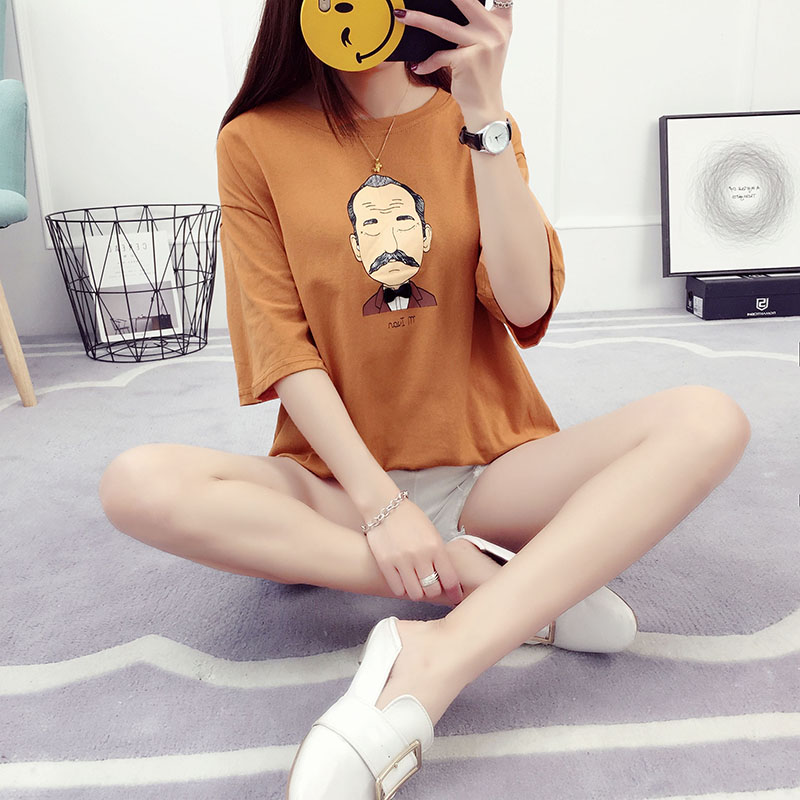 新款夏裝女學生韓版寬松百搭衣服女夏季短袖t恤卡通印花體恤