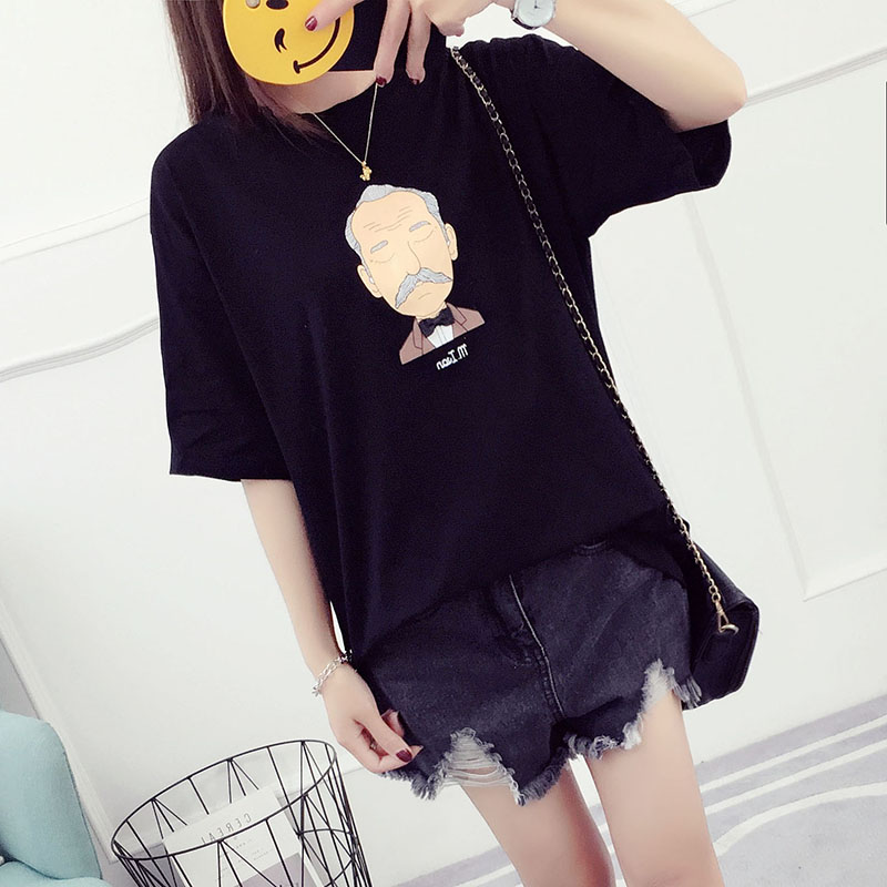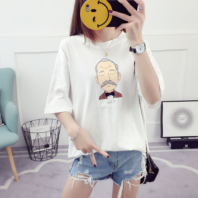 / 新款夏裝女學生韓版寬松百搭衣服女夏季短袖t恤卡通印花體恤