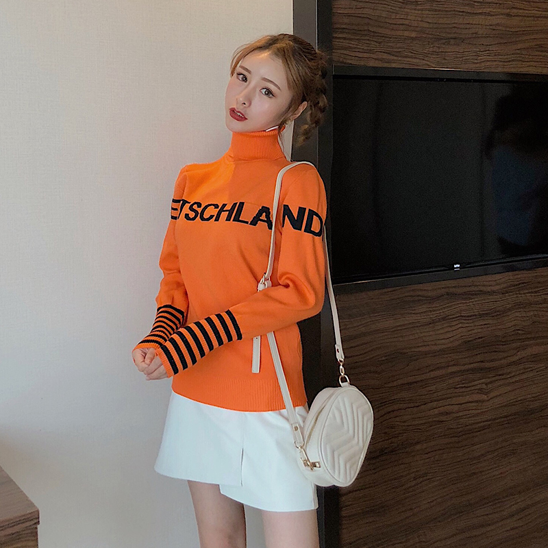 / 秋冬新款韓版時尚百搭上衣女裝顯瘦長袖毛衣高領復古chic針織衫潮