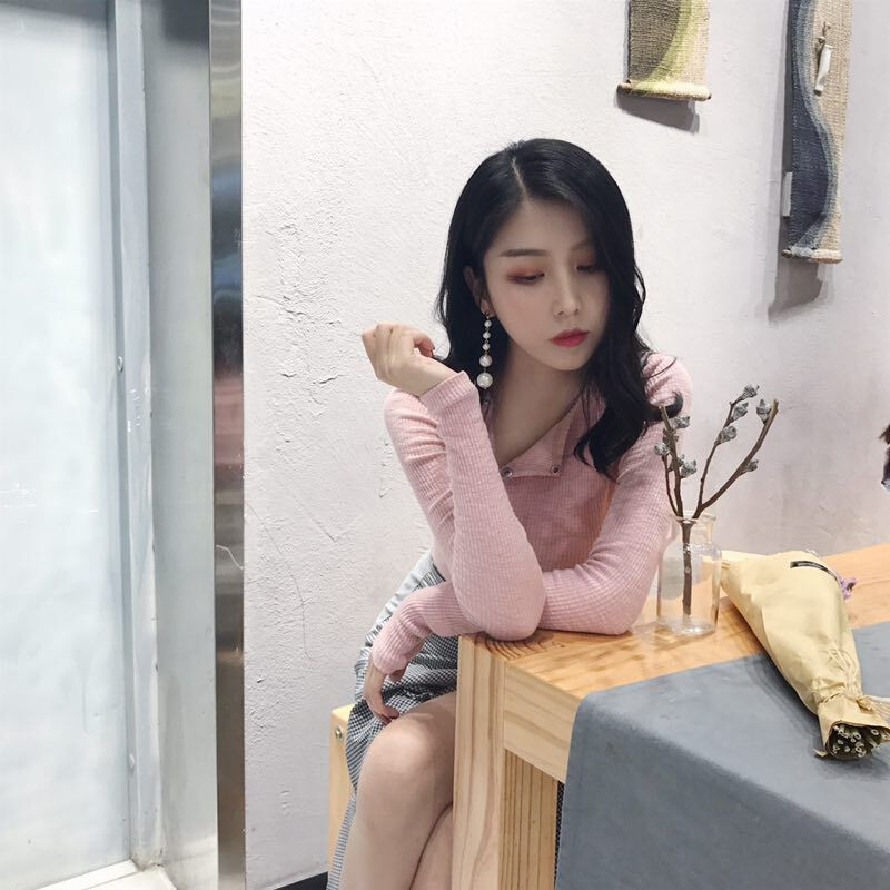 / 港味復古chic風斜扣螺紋針織新款韓版修身顯瘦純色長袖襯衫上衣女