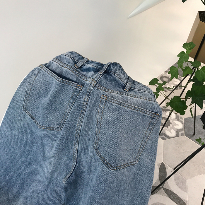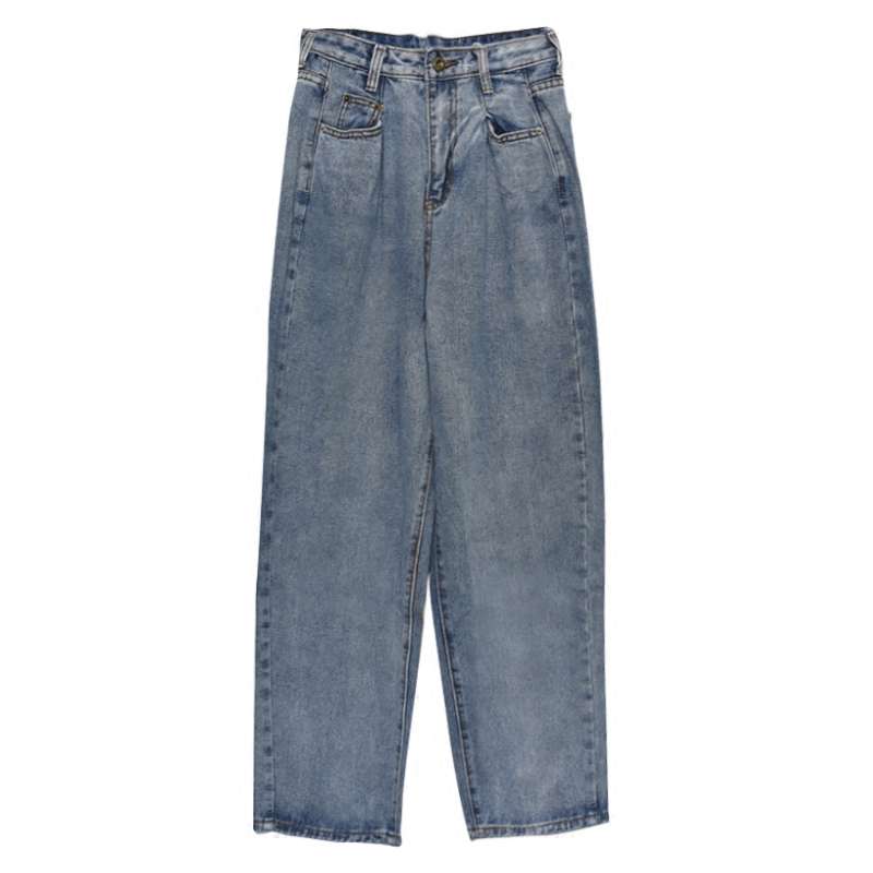 港味復古韓國chic風復古顯瘦淺色撕邊牛仔褲高腰百搭休閑闊腿褲女
