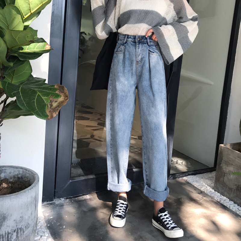 秋裝女2018新款復古港味九分褲學生韓版寬松高腰原宿直筒牛仔褲女