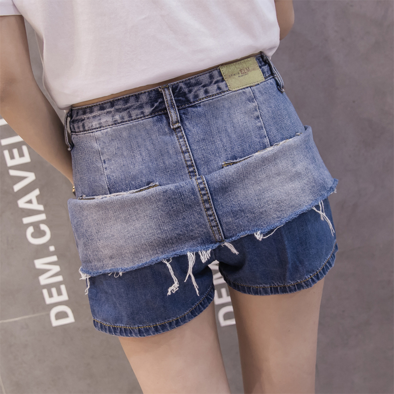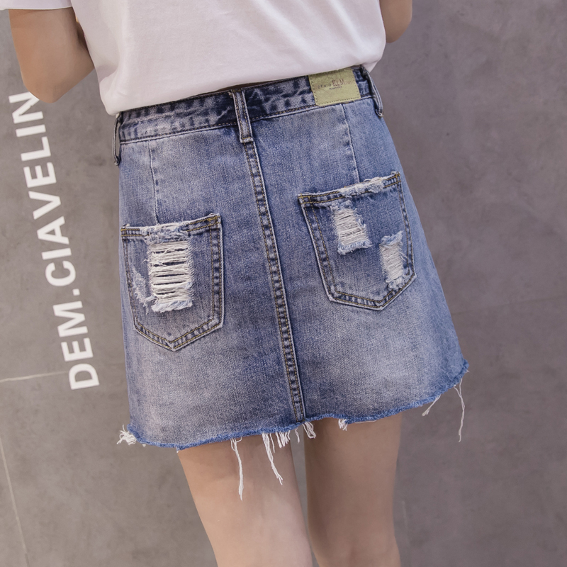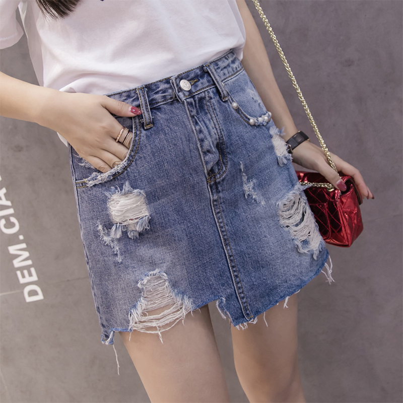 / 韓版高腰牛仔裙半身裙女防走光褲裙包臀短裙A字裙破洞不規則半裙