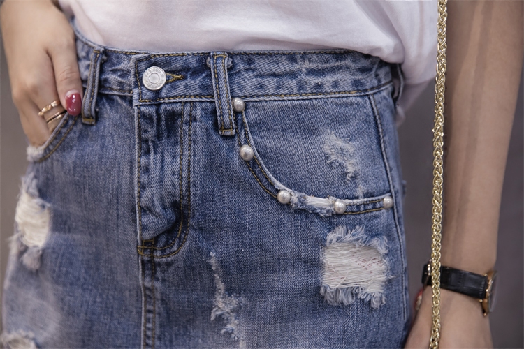 韓版高腰牛仔裙半身裙女防走光褲裙包臀短裙A字裙破洞不規則半裙