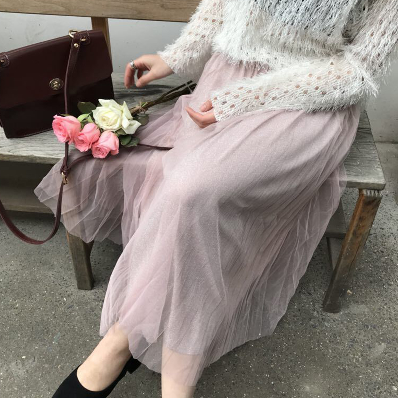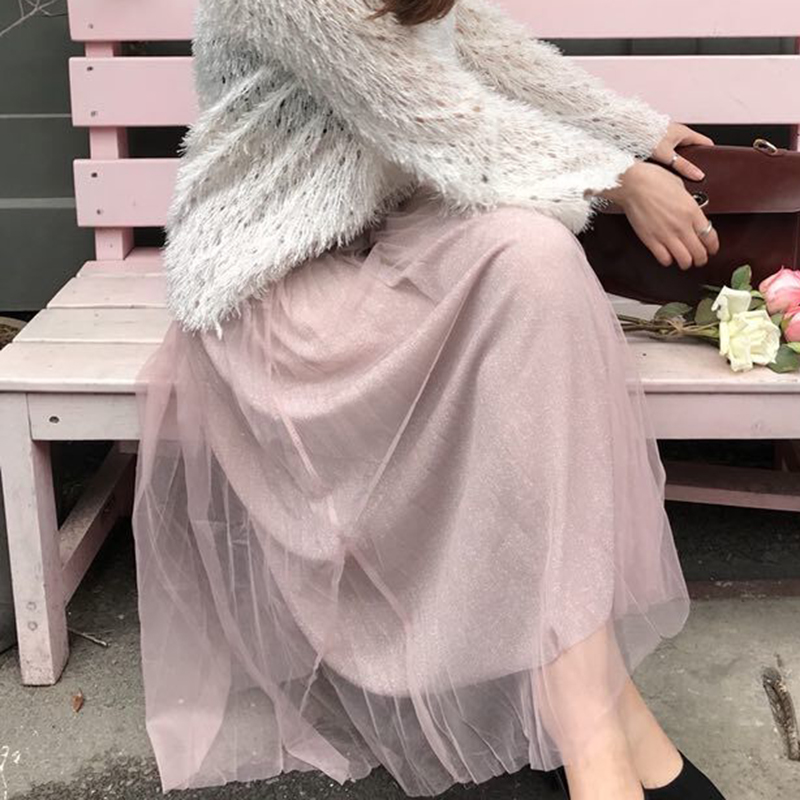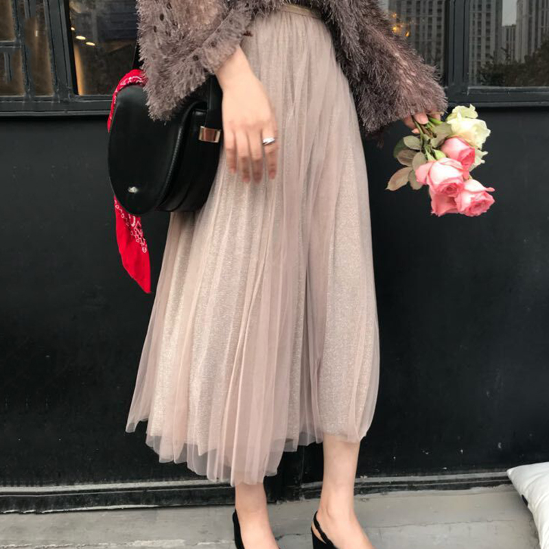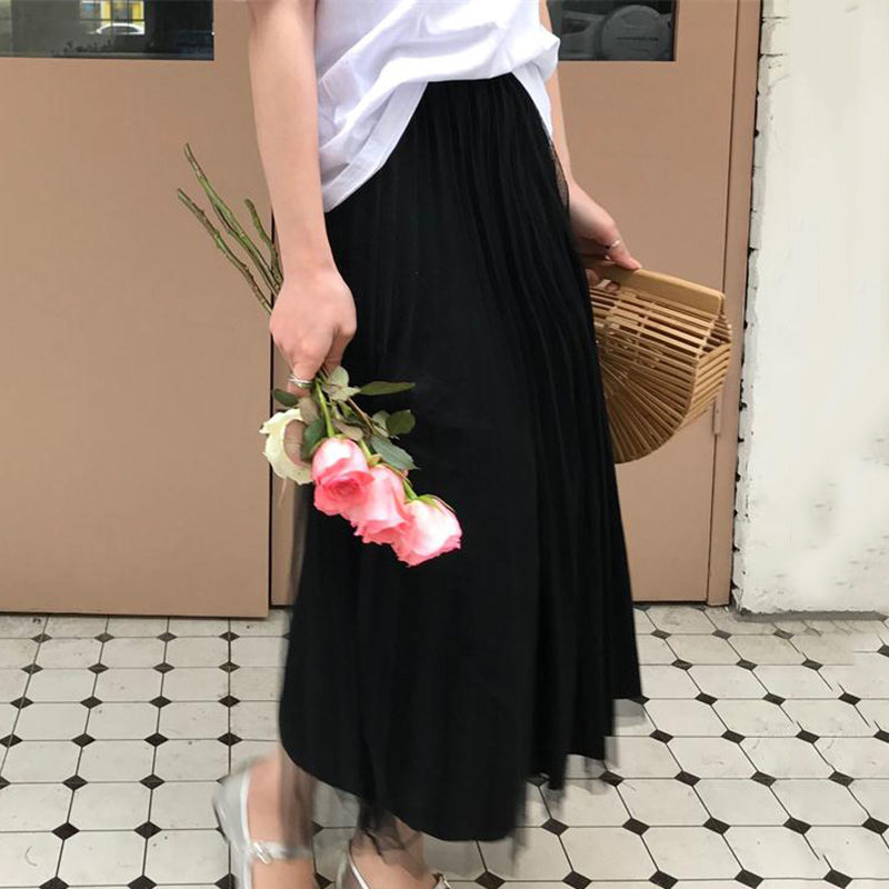 / 秋裝女2018新款韓版時尚高腰黑色網紗半身裙學生洋氣中長A字裙子