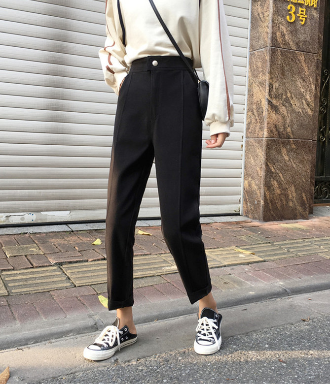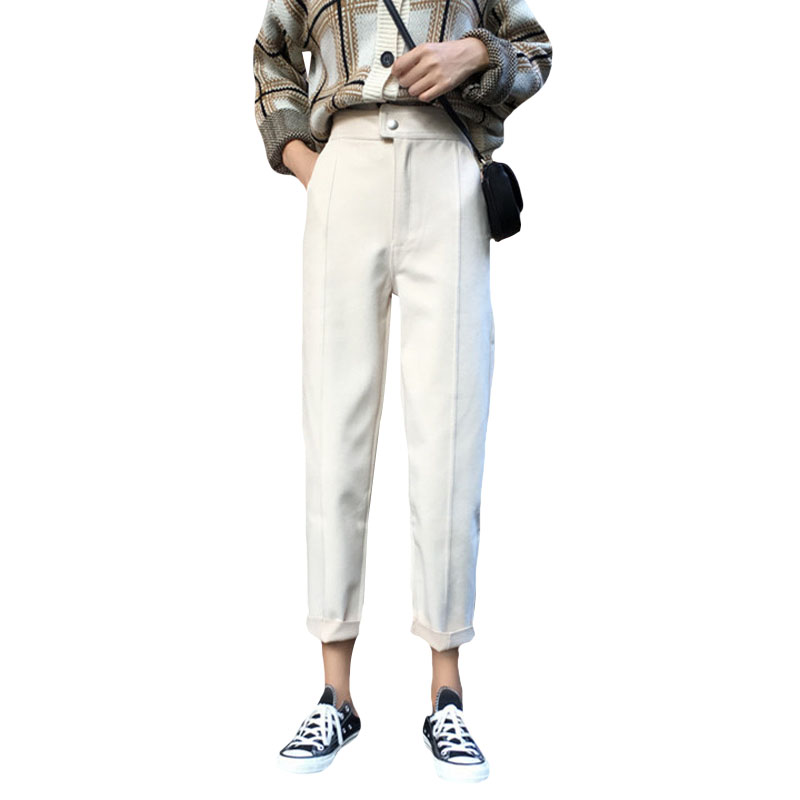 / 2018新款秋冬韓版寬松加厚學生毛呢褲子高腰闊腿褲九分褲休閑褲女