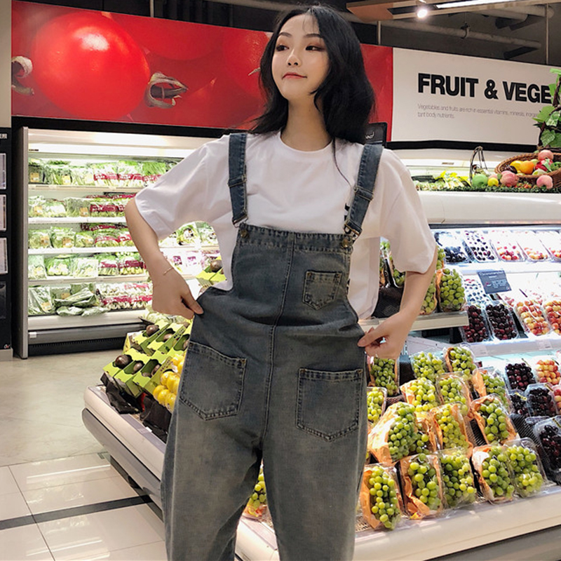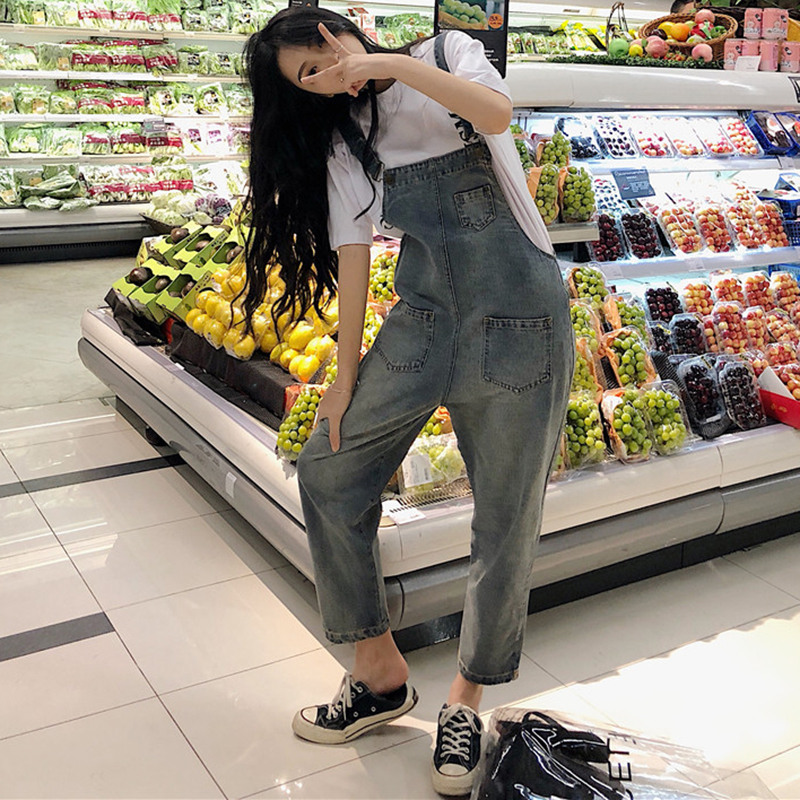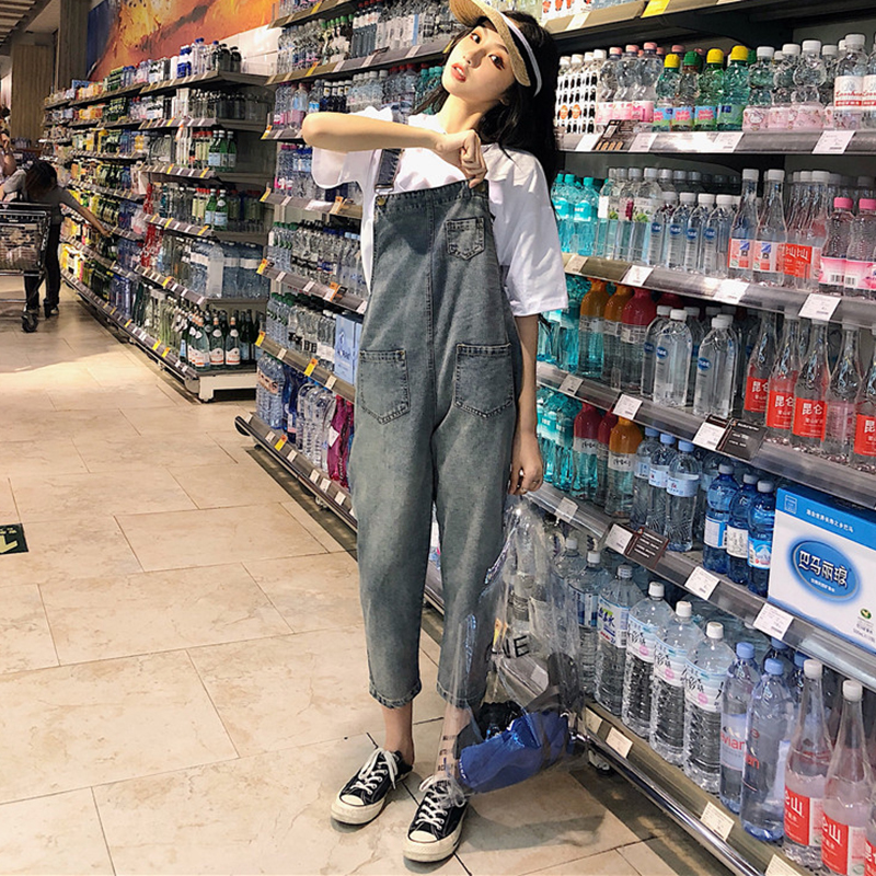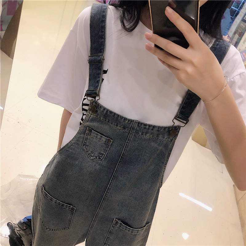 / 背帶褲女夏季新款韓版女裝休閑百搭水洗牛仔褲學生寬松九分休閑褲