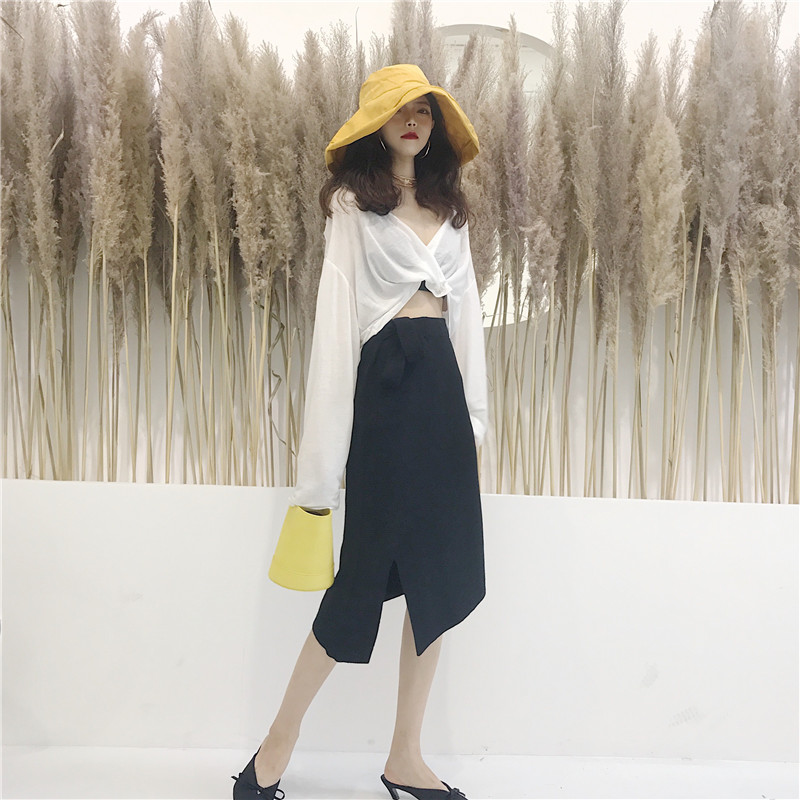 2018新款韓版女秋季港風chic時尚套裝性感防曬衫高腰包臀半身短裙