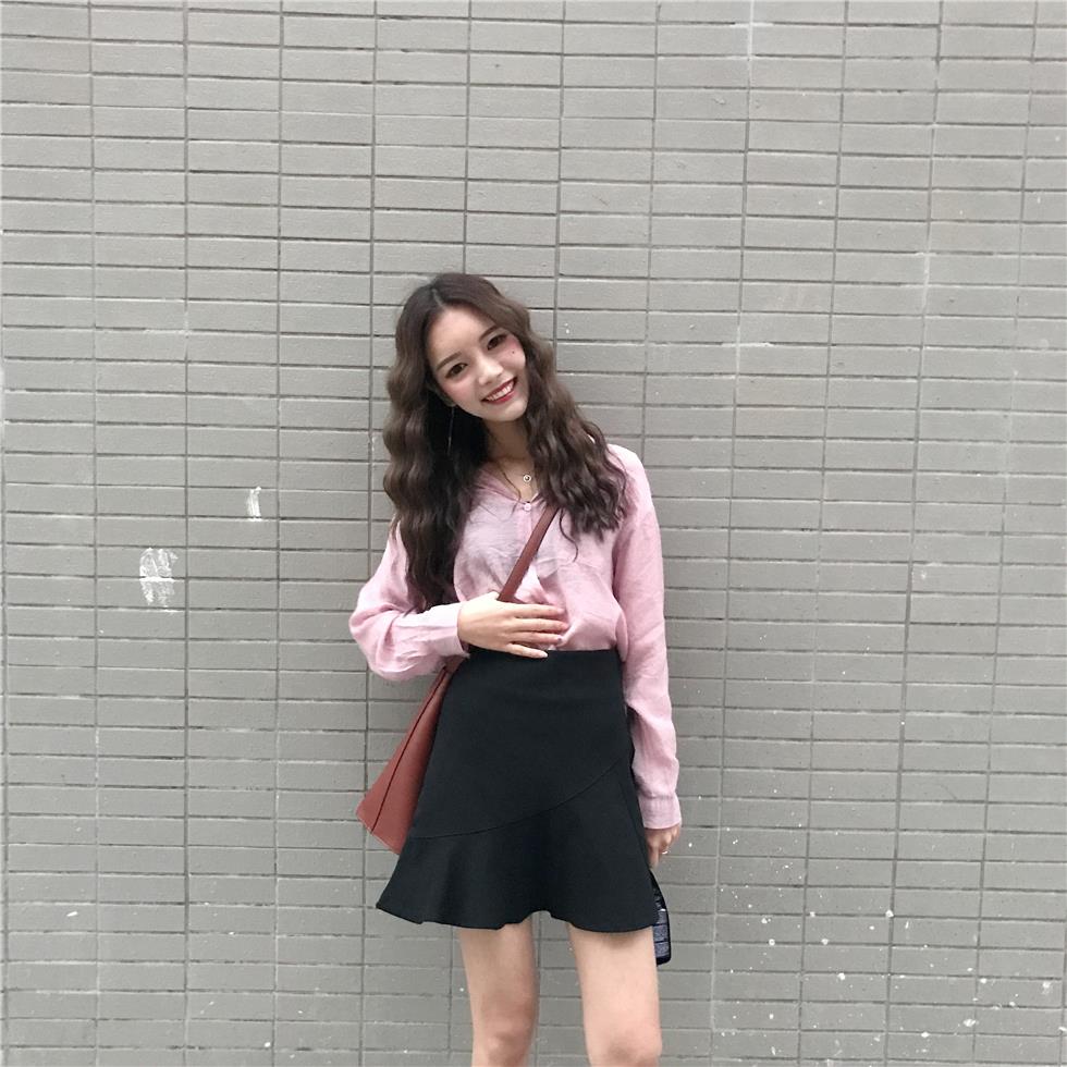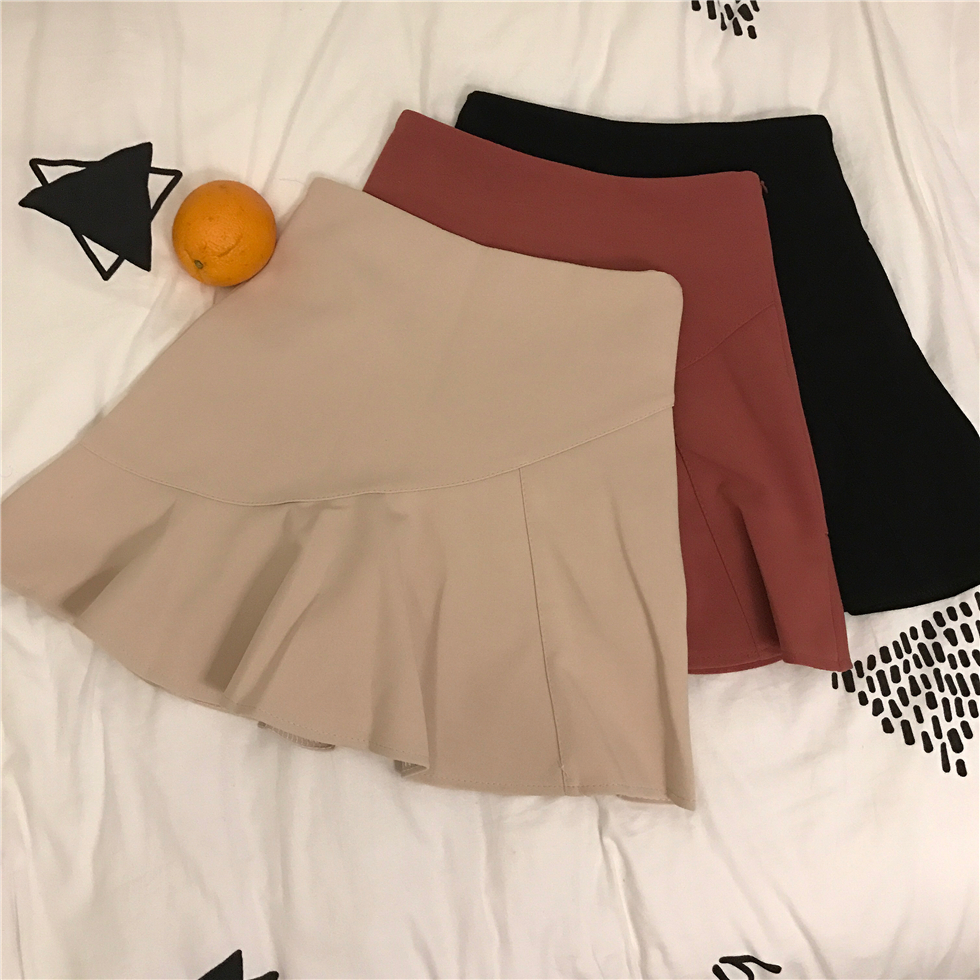 秋裝女裝韓版高腰顯瘦包臀裙A字裙木耳荷葉邊半身裙短裙學生裙子